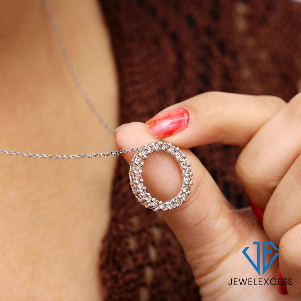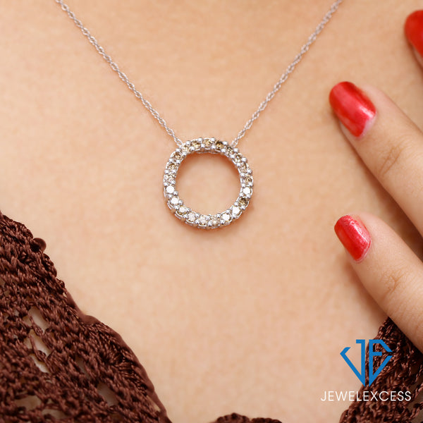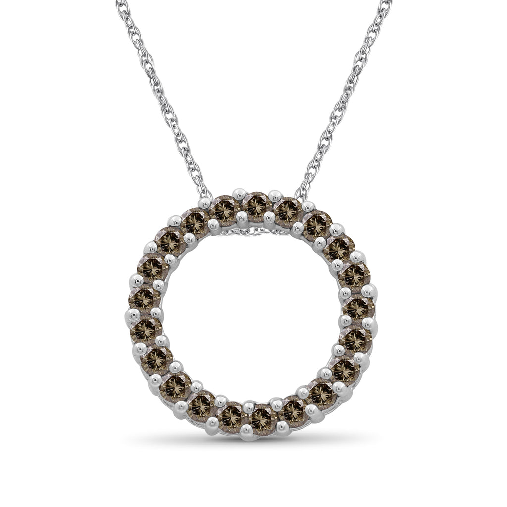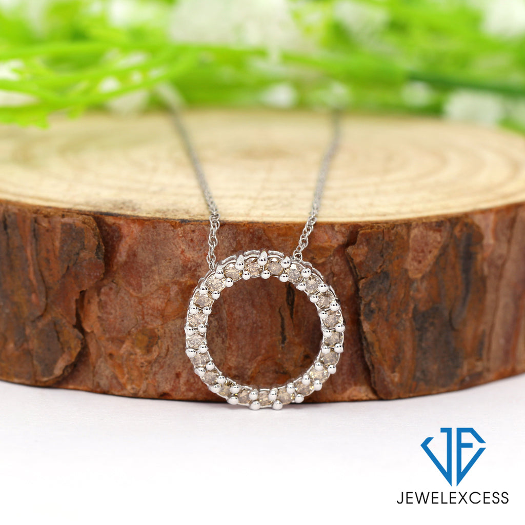1.00 Carat Champagne Diamonds Open Circle Pendant in Sterling Silver