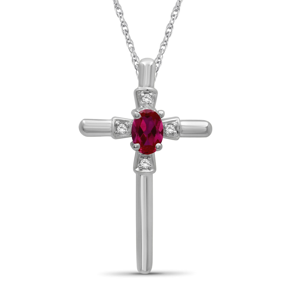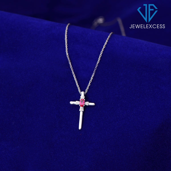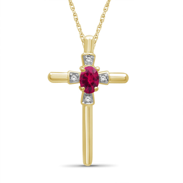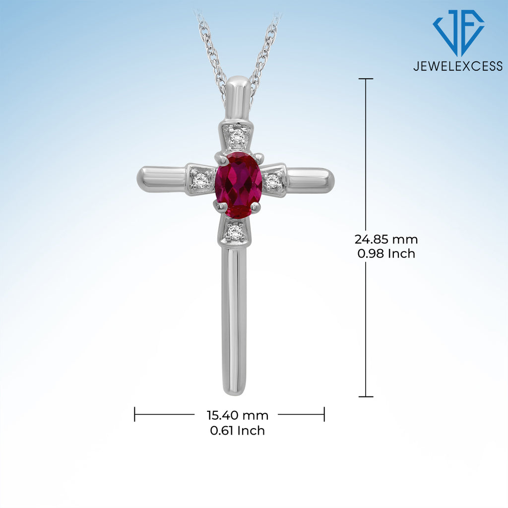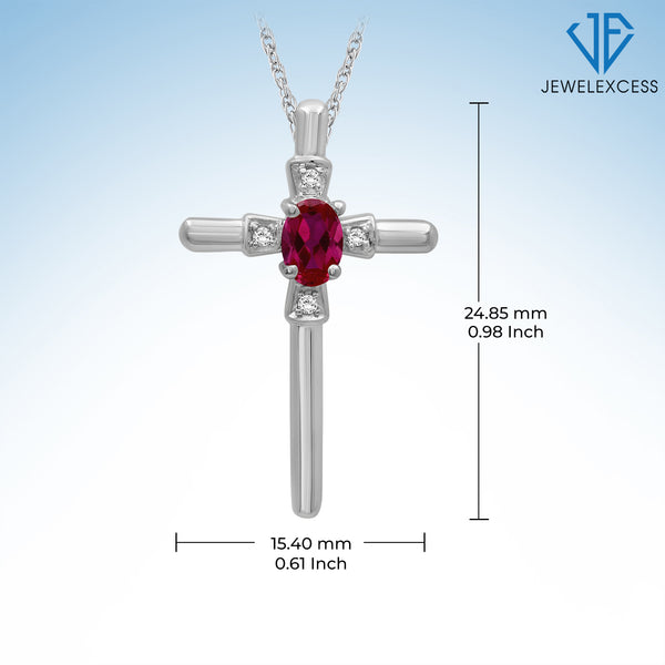 1/4 Carat T.G.W. Created Ruby And Accent White Diamond Sterling Silver Or 14K Gold-Plated Cross Pendant