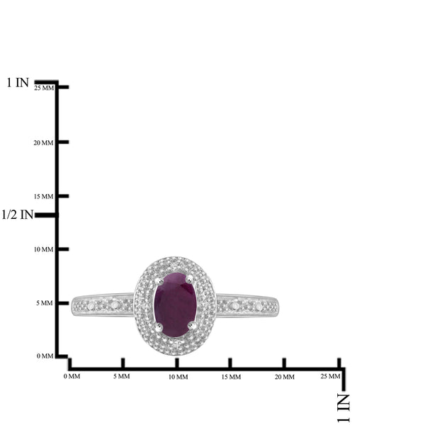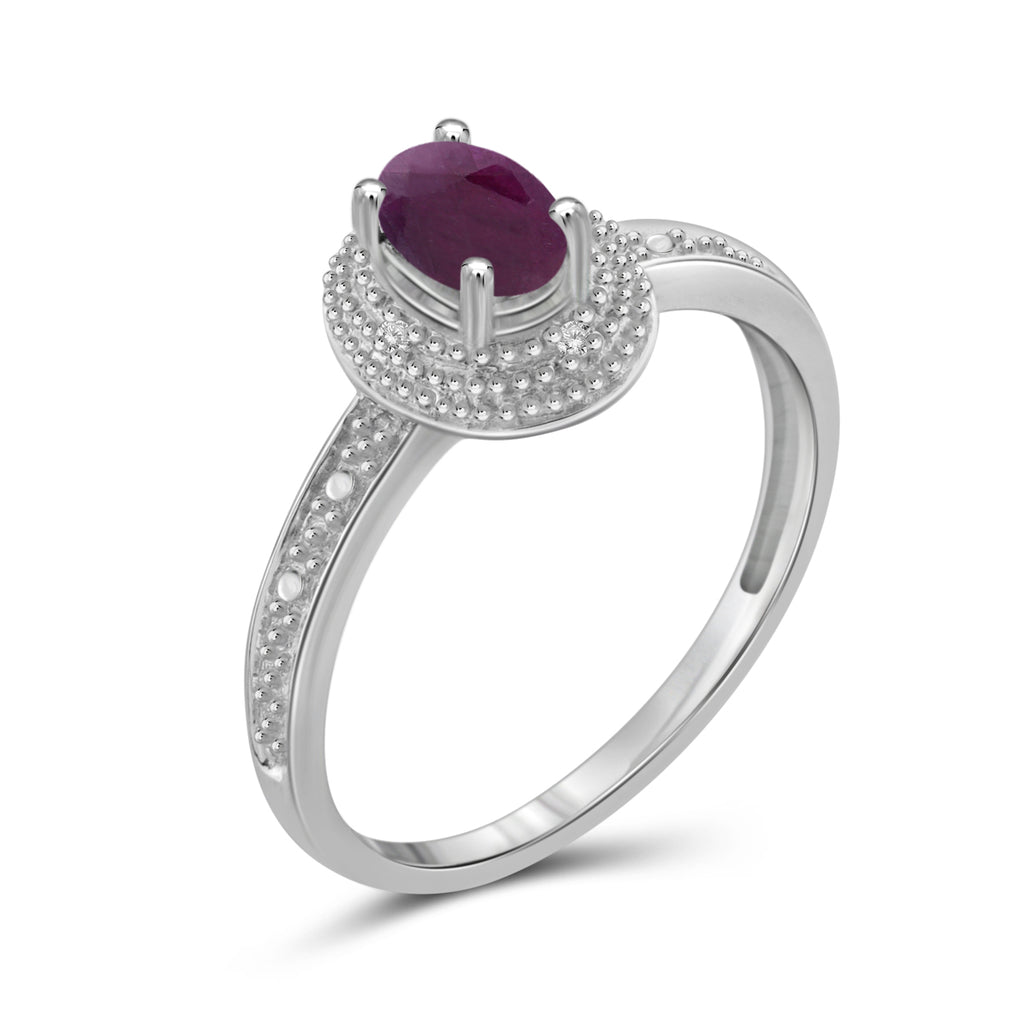 Ruby Ring Birthstone Jewelry – 0.50 Carat Ruby Sterling Silver Ring Jewelry with White Diamond Accent – Gemstone Rings with Hypoallergenic Sterling Silver Band