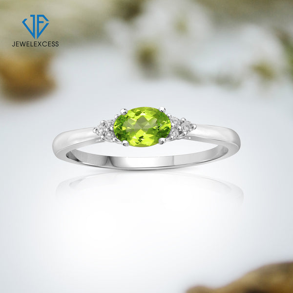 Peridot Ring Birthstone Jewelry – 0.50 Carat Peridot 0.925 Sterling Silver Ring Jewelry with White Diamond Accent – Gemstone Rings with Hypoallergenic 0.925 Sterling Silver Band