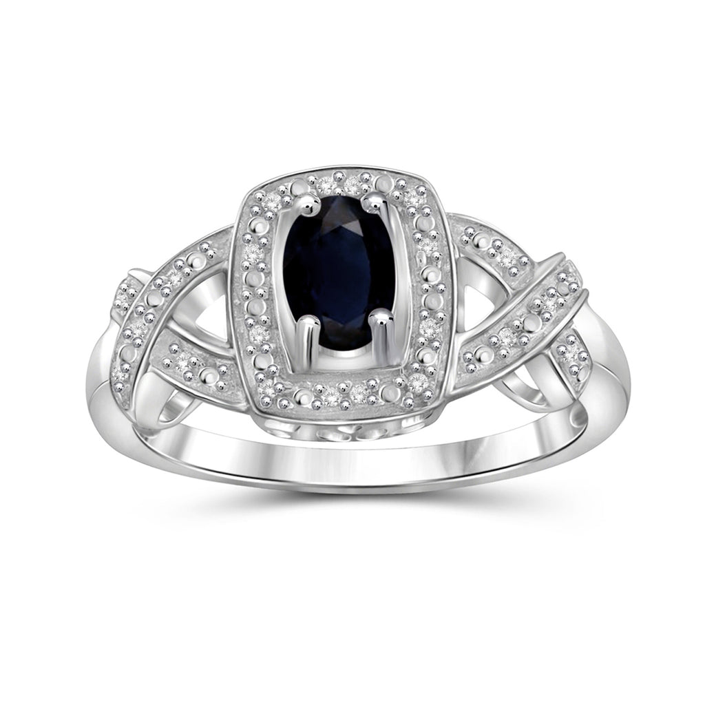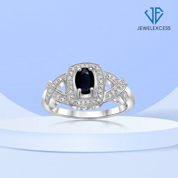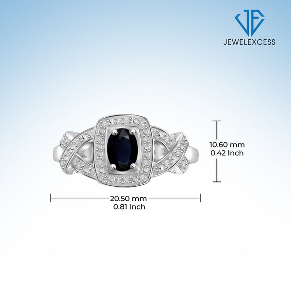 Sapphire Ring Birthstone Jewelry – 0.75 Carat Sapphire 0.925 Sterling Silver Ring Jewelry with White Diamond Accent – Gemstone Rings with Hypoallergenic 0.925 Sterling Silver Band