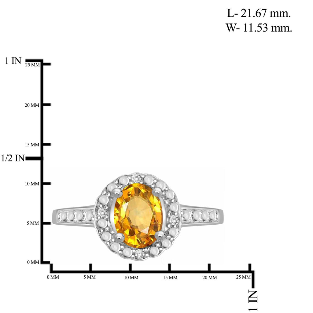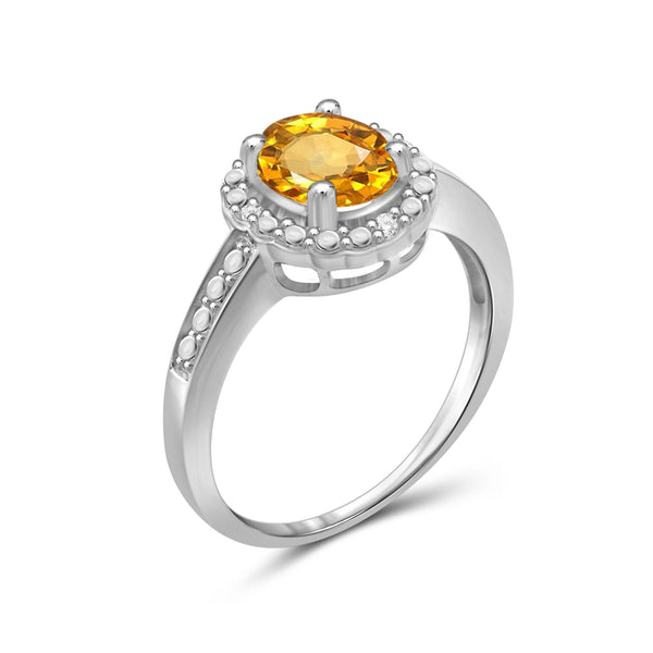 Citrine Ring Birthstone Jewelry – 1.10 Carat Citrine Sterling Silver Ring Jewelry with White Diamond Accent – Gemstone Rings with Hypoallergenic Sterling Silver Band
