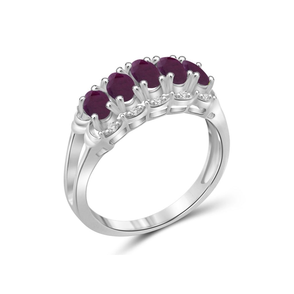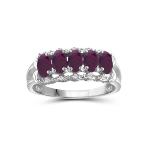 1 1/3 Carat T.G.W. Ruby And 1/20 Carat White Diamond Sterling Silver Ring