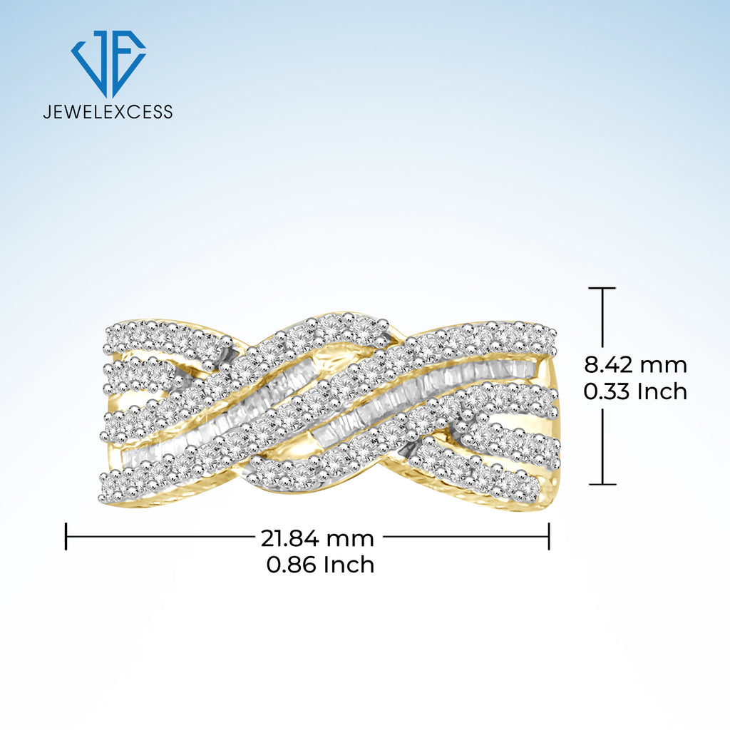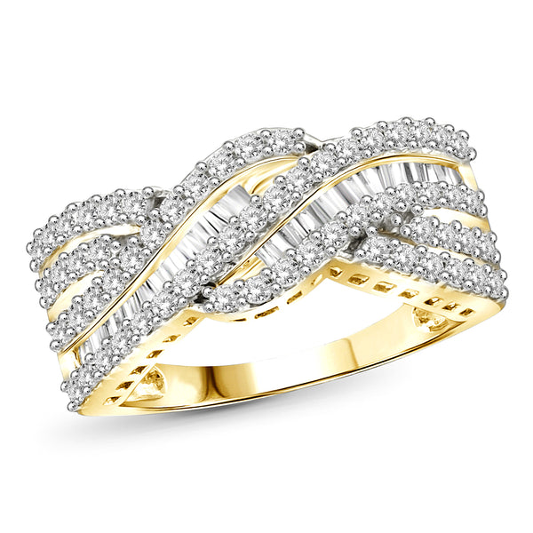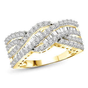A diamond ring is always fashionable, no matter what the shape or style. The ring you choose now will still look great 30 years from now. This 1ctw Genuine White Diamond Ring in Sterling Silver. Each design features a combination of genuine round and baguette-cut white diamonds for a luxurious look.