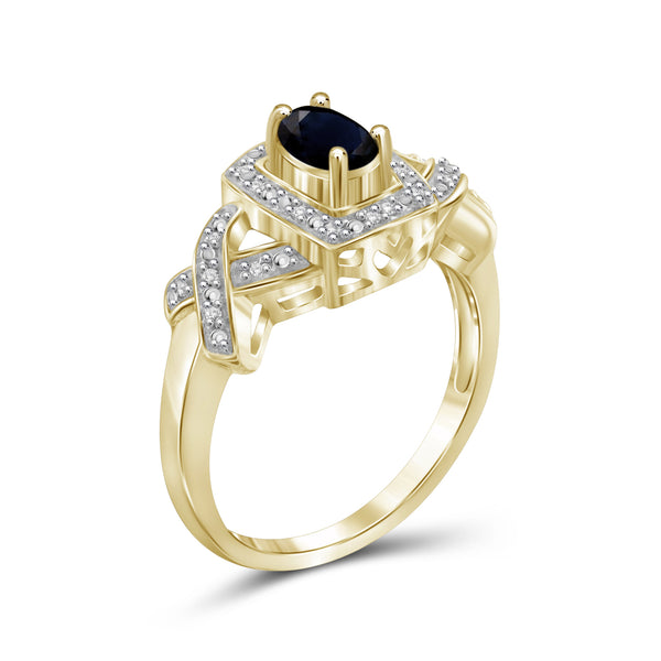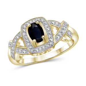 0.67 Carat T.G.W. Sapphire Gemstone and 1/20 Carat T.W. White Diamond 14K Gold-Plated Ring