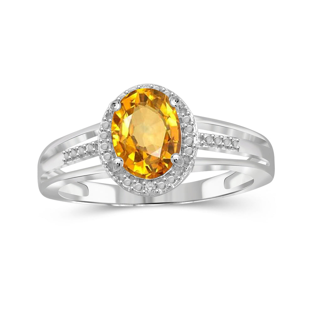 - The average Citrine birthstone ring often turns out not to be genuine, with a faux stone that looks dull and flat. The JewelExcess Citrine Ring features a real 1.10carat gemstone, cut into a gorgeous oval. With a hypoallergenic, luminous Sterling Silver setting, this stunning stone ring’s vibrant, Yellow shade compliments all skin tones.