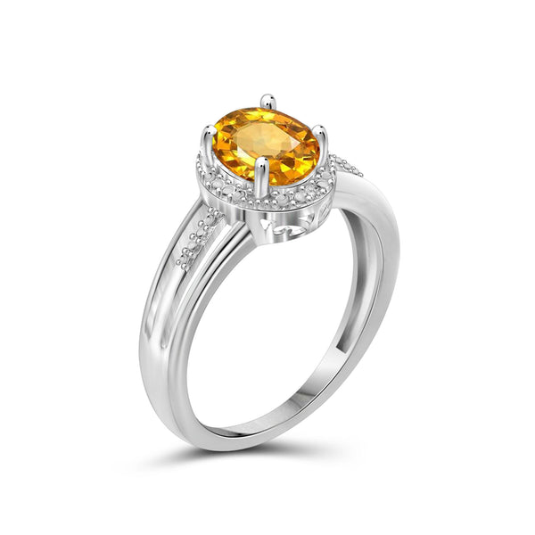 Citrine Ring Birthstone Jewelry – 1.10 Carat Citrine Sterling Silver Ring Jewelry with White Diamond Accent – Gemstone Rings with Hypoallergenic Sterling Silver Band