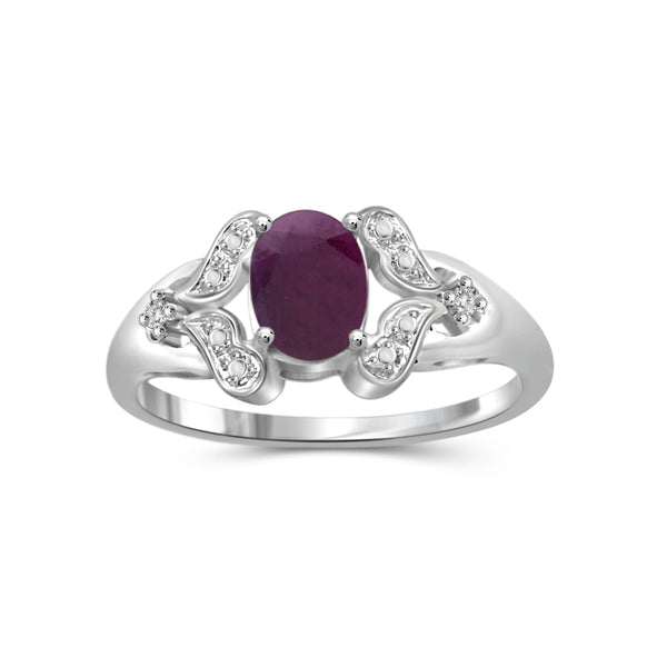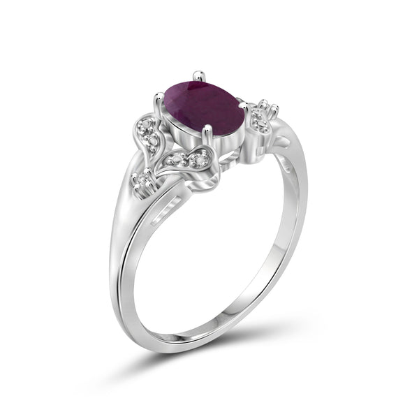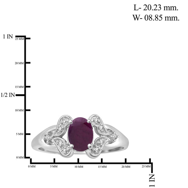 Ruby Ring Birthstone Jewelry – 0.85 Carat Ruby Sterling Silver Ring Jewelry with White Diamond Accent – Gemstone Rings with Hypoallergenic Sterling Silver Band