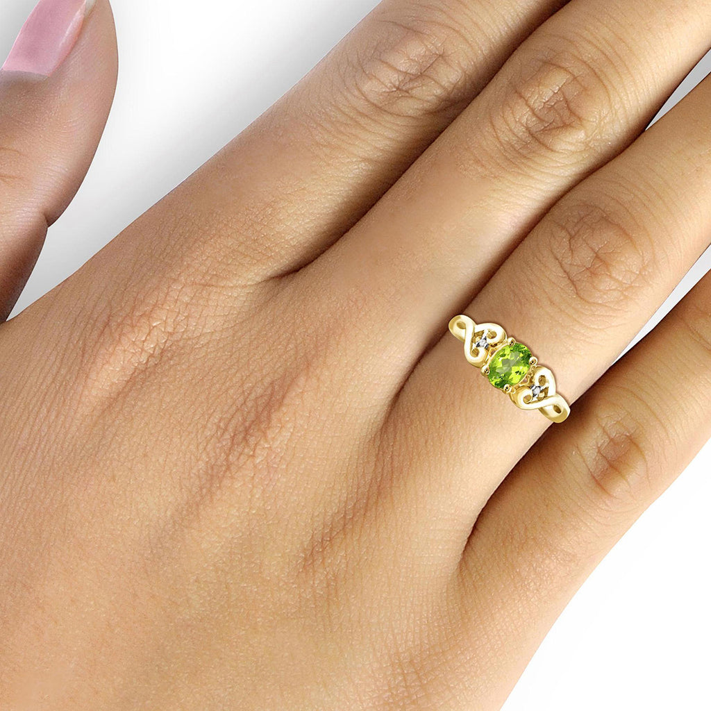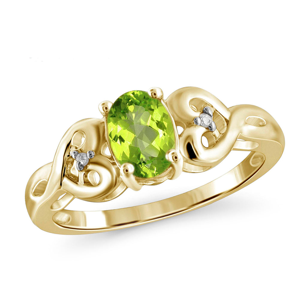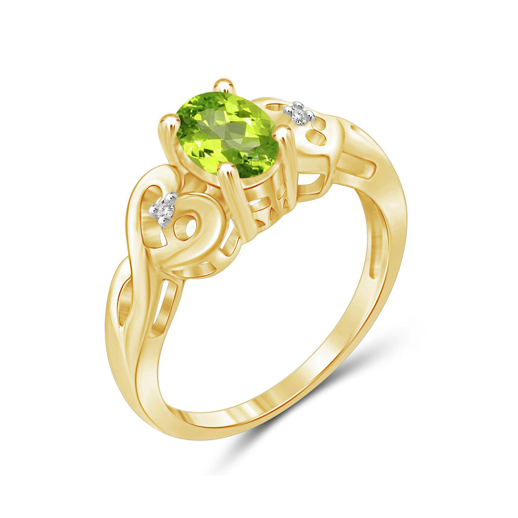 0.82 Carat T.G.W. Peridot Gemstone and Accent White Diamond 14K Gold-Plated Ring