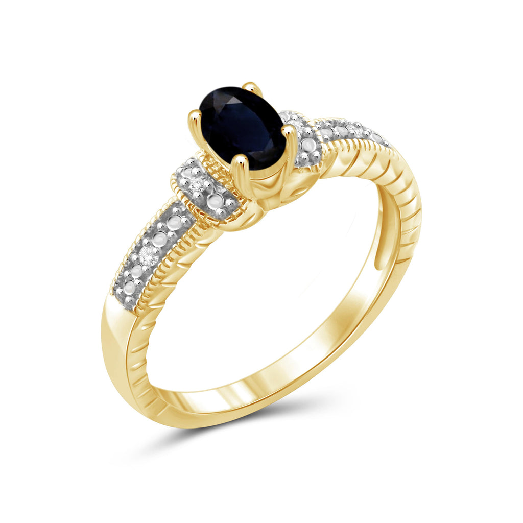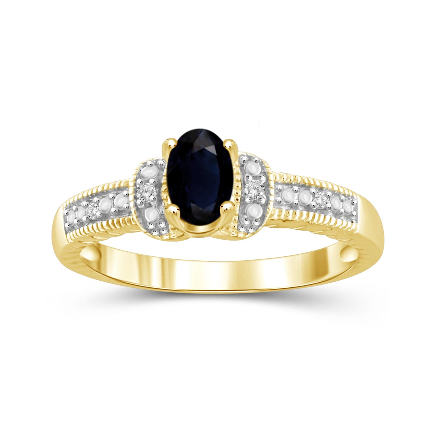 1/2 Carat T.G.W. Sapphire And Accent White Diamond Sterling Silver 14K Gold-Plated Ring