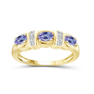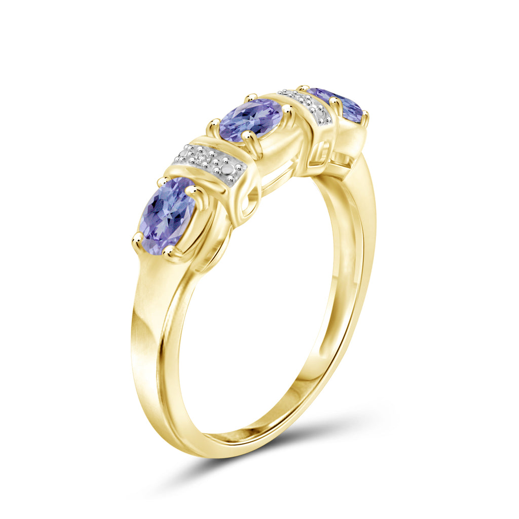 0.72 Carat Tanzanite Gemstone and Accent White Diamond 14K Gold-Plated Ring
