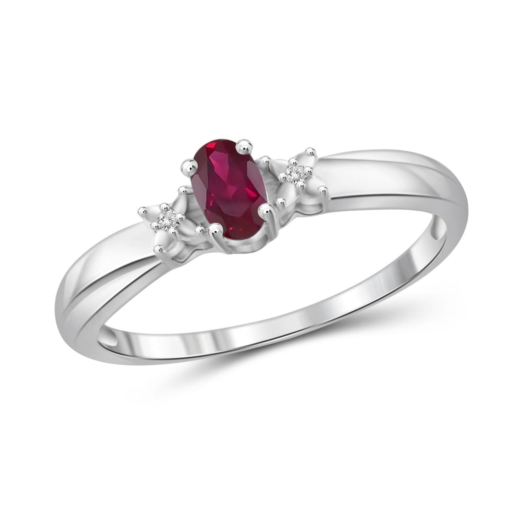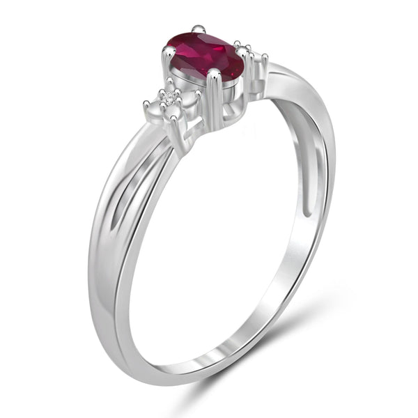 0.26 Carat Ruby Gemstone and Accent White Diamond Sterling Silver Ring