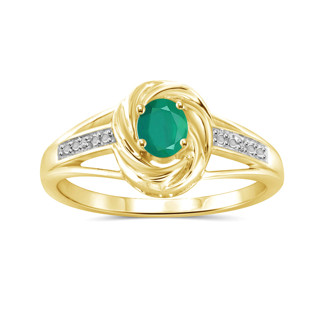 - The average Emerald birthstone ring often turns out not to be genuine, with a faux stone that looks dull and flat. The JewelExcess Emerald Ring features a real 0.25carat gemstone, cut into a gorgeous oval. With a hypoallergenic, luminous 14K Gold-Plated setting, this stunning stone ring’s vibrant, Green shade compliments all skin tones.