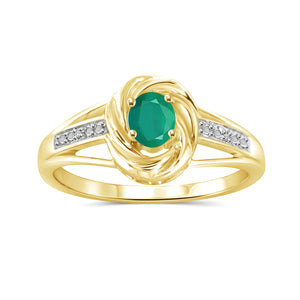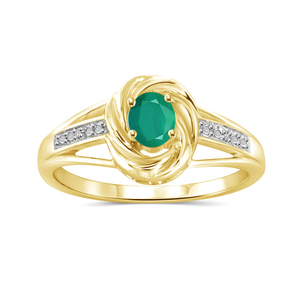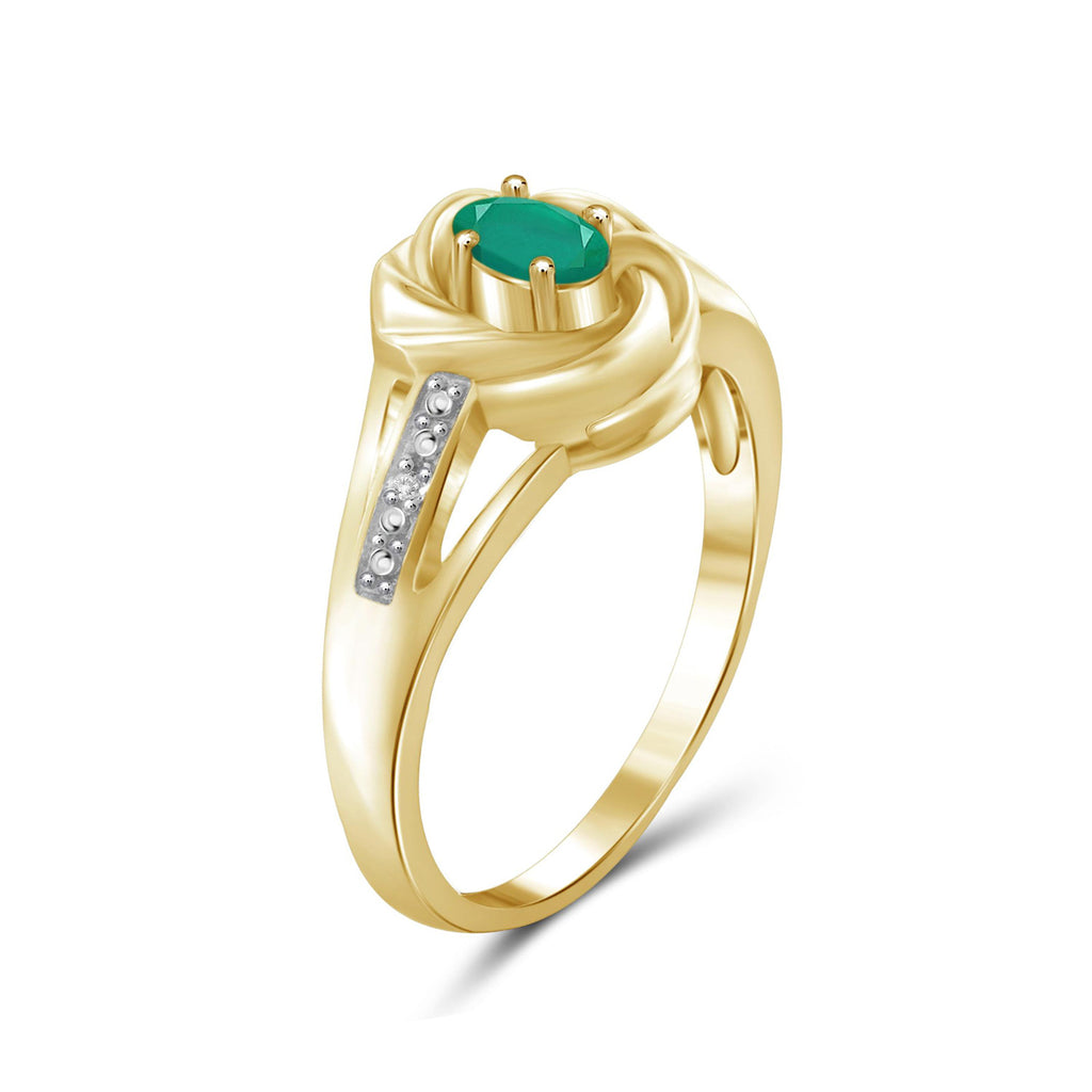 Emerald Ring Birthstone Jewelry – 0.25 Carat Emerald 14K Gold-Plated Ring Jewelry with White Diamond Accent – Gemstone Rings with Hypoallergenic 14K Gold-Plated Band