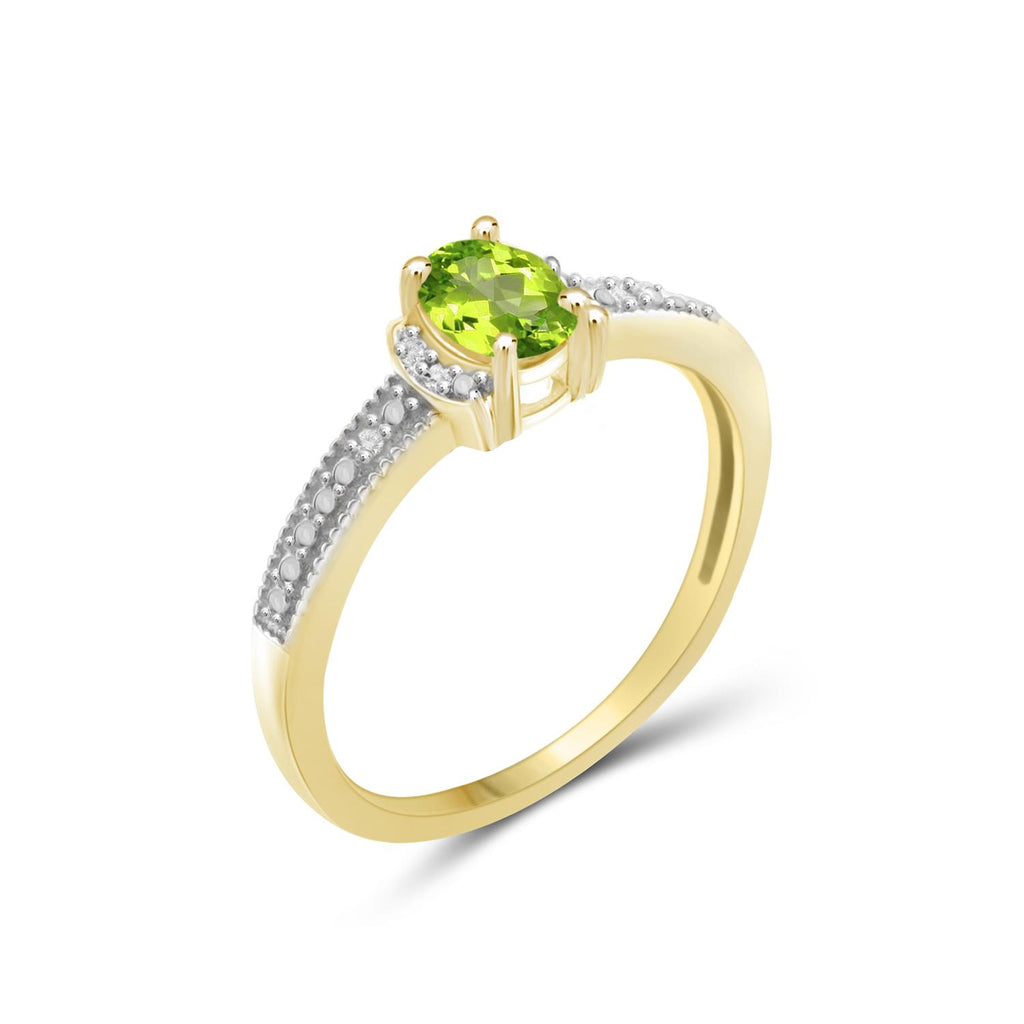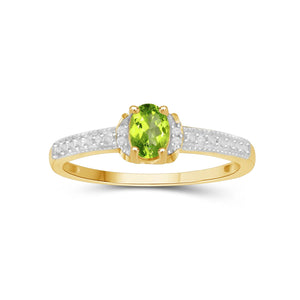 0.48 Carat T.G.W. Peridot Gemstone and 1/20 Carat T.W. White Diamond 14K Gold-Plated Ring