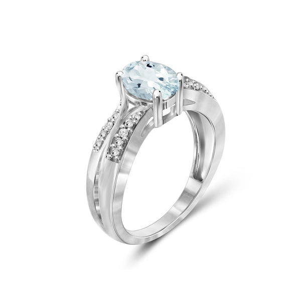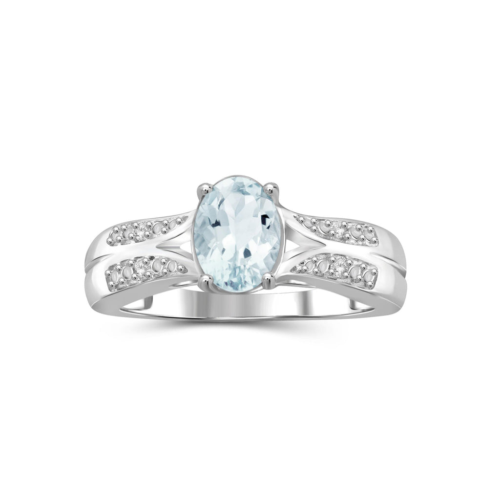1.15 Carat T.G.W. Aquamarine Gemstone Ring will make a delightful addition to your jewelry collection. It is available in both sterling silver or yellow gold-plated finishes to suit your personal style. The 1/20 carat T.W. white diamond ring is contrasted by a subtle and soothing greenish blue which results in a simple but unique piece. The aquamarine ring can be worn with a wide variety of outfits and will help to add a little extra sparkle and flair to your look. This eye-catching diamond ring is classic and timeless and is sure to stand out as a signature accessory when you wear it. This ring features a 1.5 carat oval-cut aquamarine center stone, which is flanked by genuine white diamond accents. It is ideal for the woman in your life that wants jewelry to be versatile and elegant. If you are looking for a new accessory that works for both casual and evening wear, this is a captivating choice.