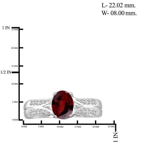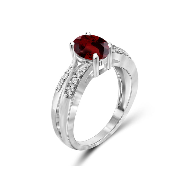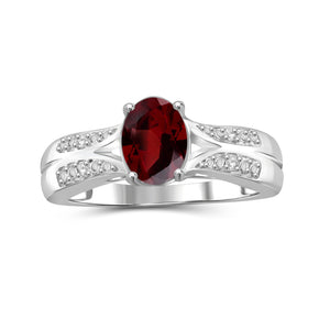 1.60 Carat Garnet Gemstone and 1/20 Carat White Diamond Sterling Silver Ring