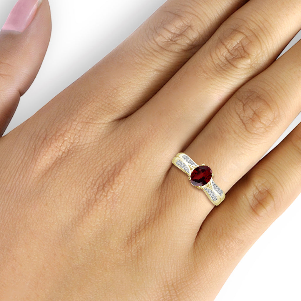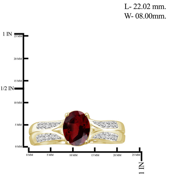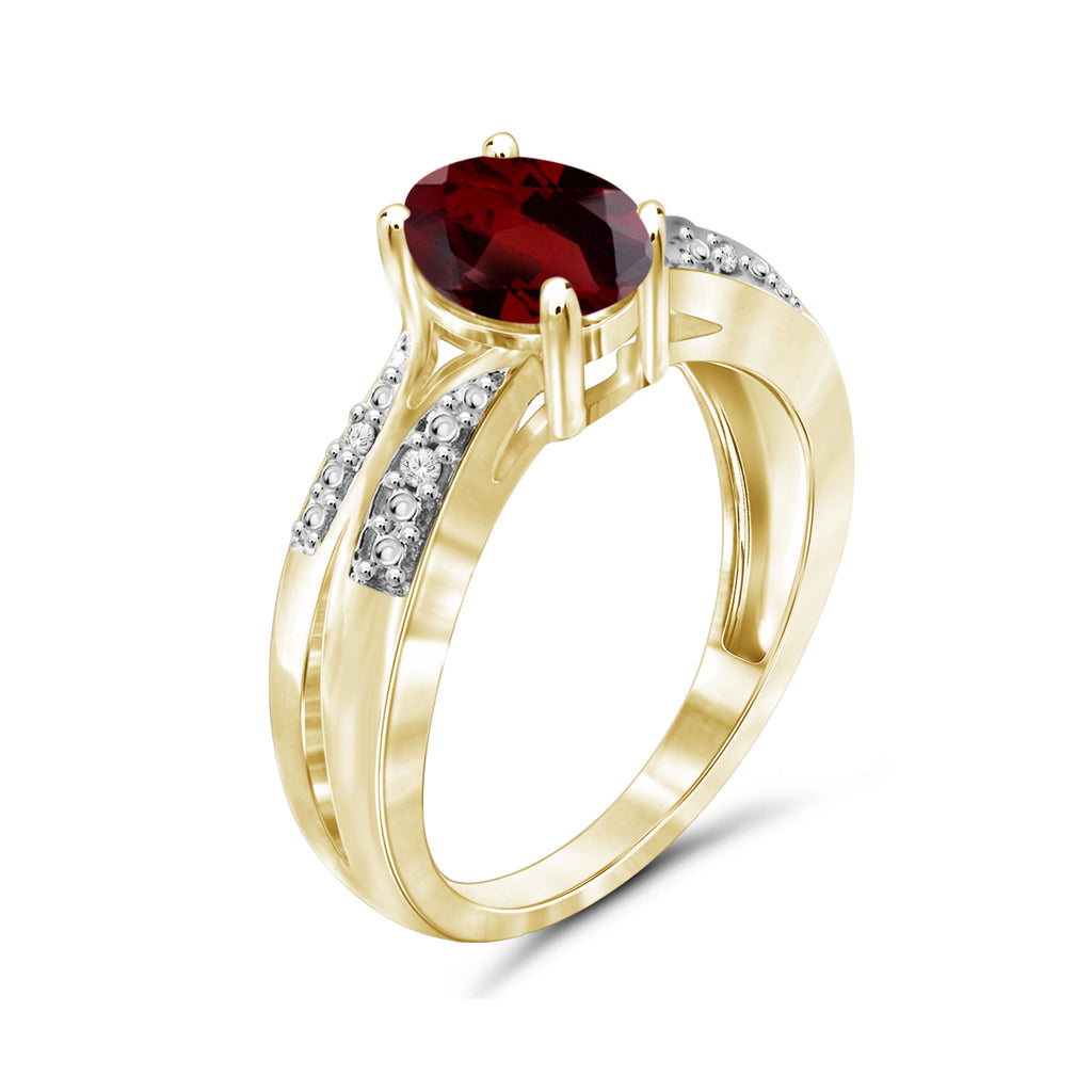 Garnet Ring Birthstone Jewelry – 1.60 Carat Garnet 14K Gold-Plated Ring Jewelry with White Diamond Accent – Gemstone Rings with Hypoallergenic 14K Gold-Plated Band