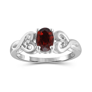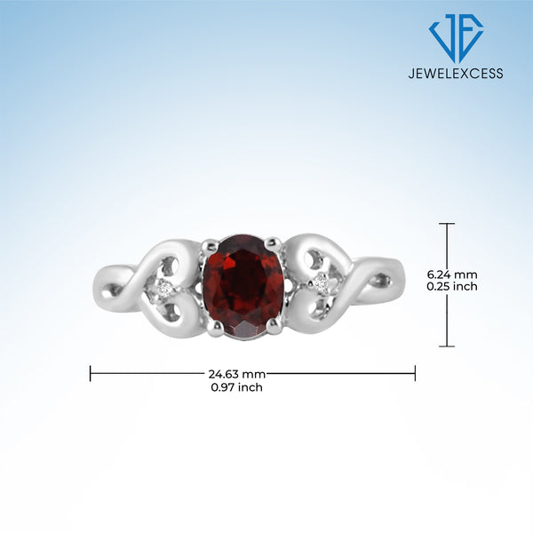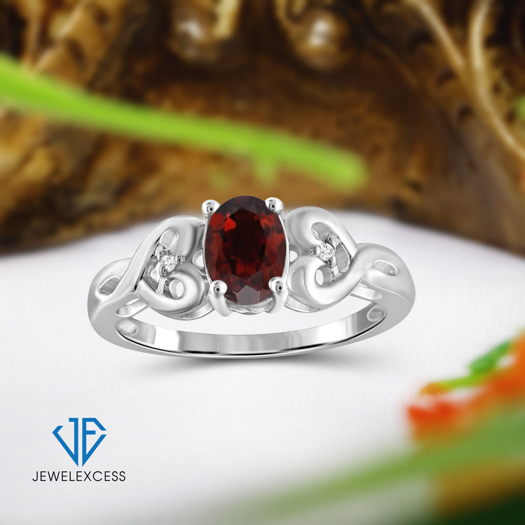 Garnet Ring Birthstone Jewelry – 1.00 Carat Garnet 0.925 Sterling Silver Ring Jewelry with White Diamond Accent – Gemstone Rings with Hypoallergenic 0.925 Sterling Silver Band
