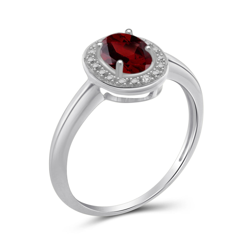 Garnet Ring Birthstone Jewelry – 1.00 Carat Garnet 0.925 Sterling Silver Ring Jewelry with White Diamond Accent – Gemstone Rings with Hypoallergenic 0.925 Sterling Silver Band