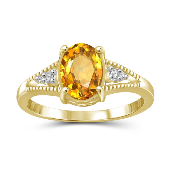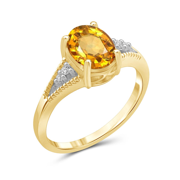1 Carat T.G.W. Citrine And 1/20 Carat White Diamond 14K Gold-plated Ring