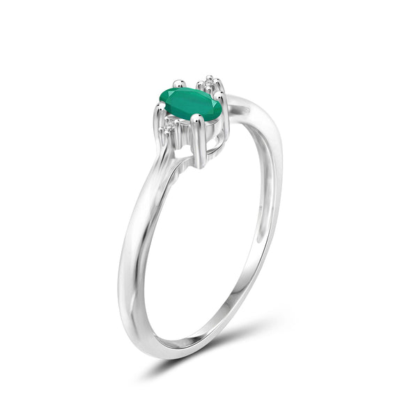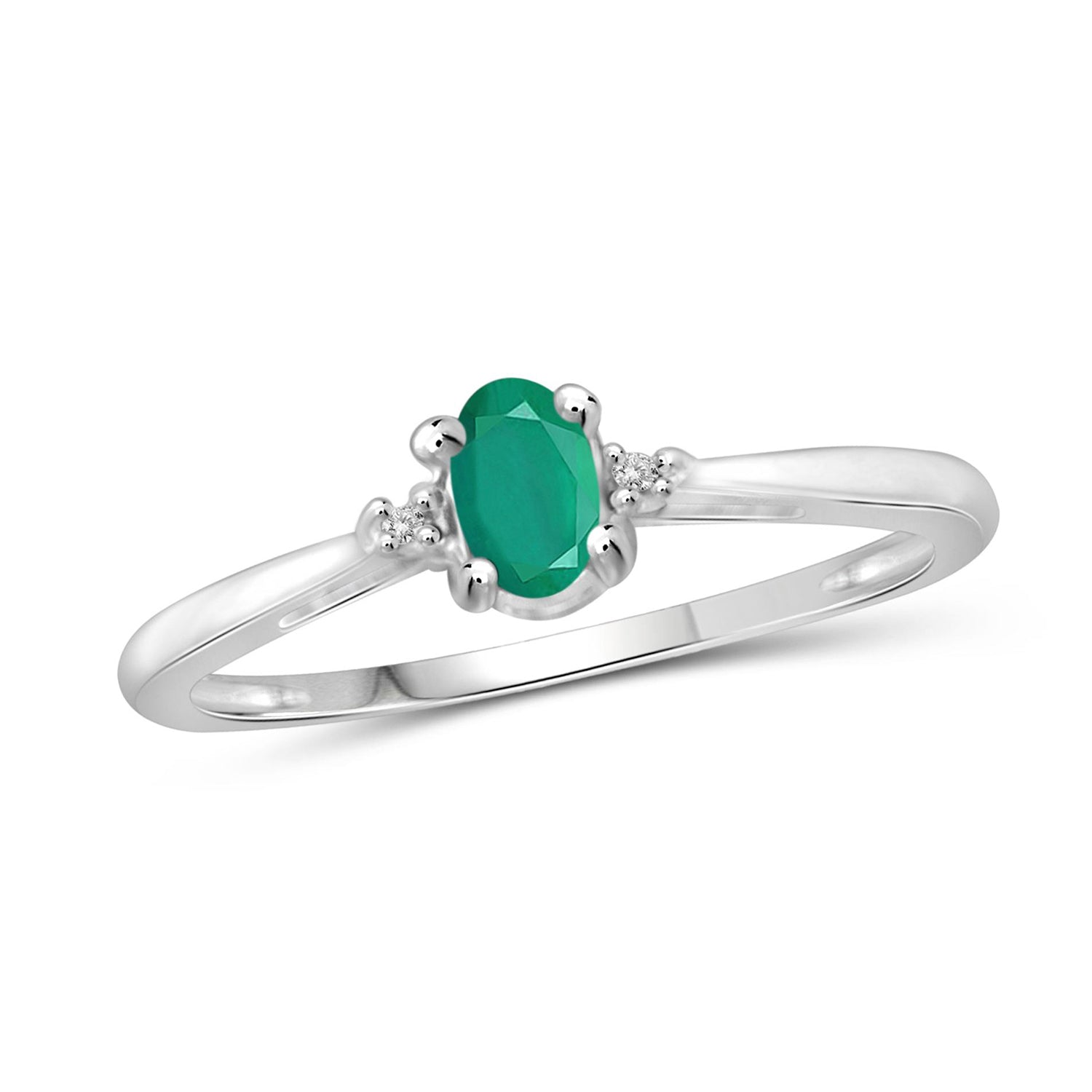 1/4 Carat T.G.W. Emerald And Accent White Diamond Sterling Silver Ring