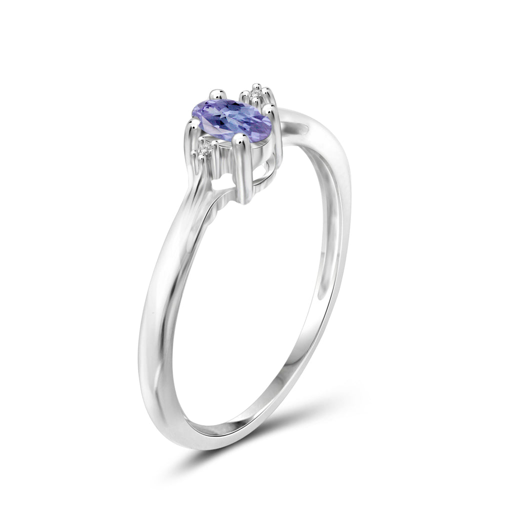0.24 Carat Tanzanite Gemstone and Accent White Diamond Sterling Silver Ring