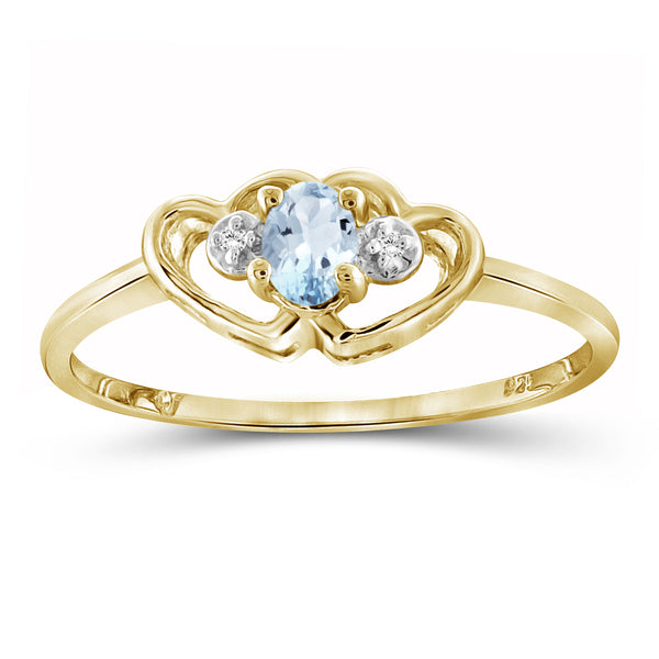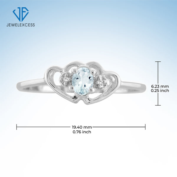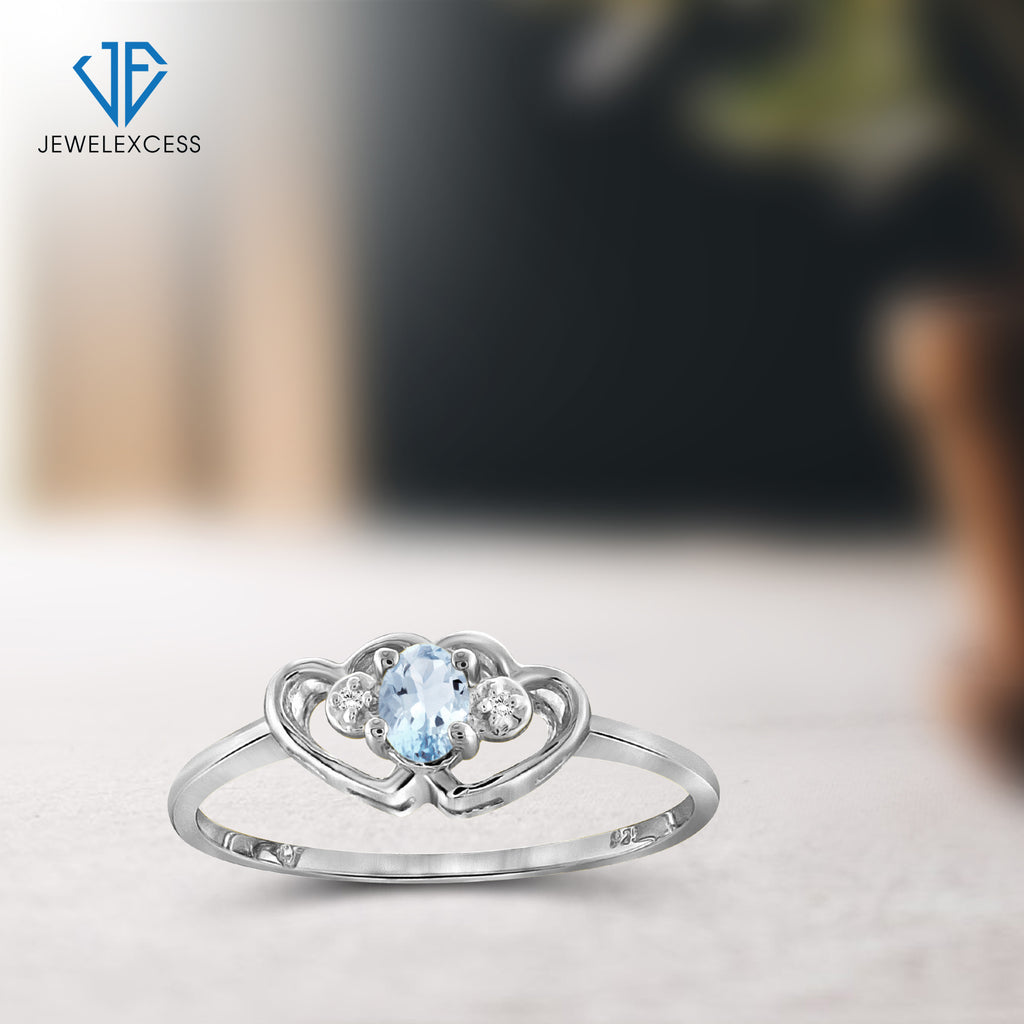 Aquamarine Ring Birthstone Jewelry – 0.15 Carat Aquamarine 0.925 Sterling Silver Or 14K Gold-Plated Ring Jewelry with White Diamond Accent – Gemstone Rings with Hypoallergenic 0.925 Sterling Silver Or 14K Gold-Plated Band