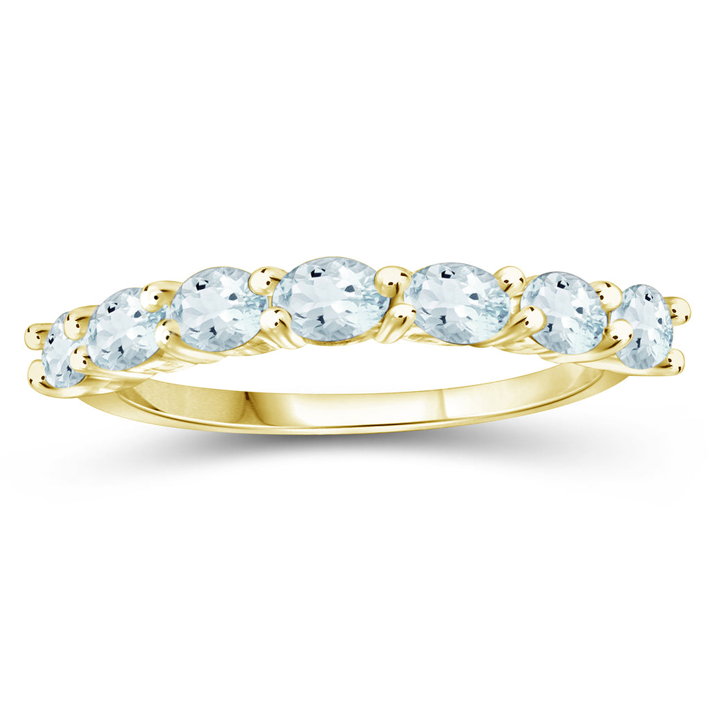 Gorgeous and shimmering, this classically styled Aquamarine,Diopside,Chrome Diopside,Citrine,Amethyst,Opal,Peridot Gemstone Ring will add an instant glow to any ensemble. Use it as an accessory for an elegant daytime affair or a glamorous night out. It also makes a beautiful gift for someone special. This ring jewelry is expertly crafted and features a line of prong-set aquamarine gems. It wears a design that will add a decadent quality to your look. This ring is available in either a sterling silver or yellow gold-plated finish. It is offered in select sizes. Use it alone for daily wearing or stack it when the occasion calls for extra glam