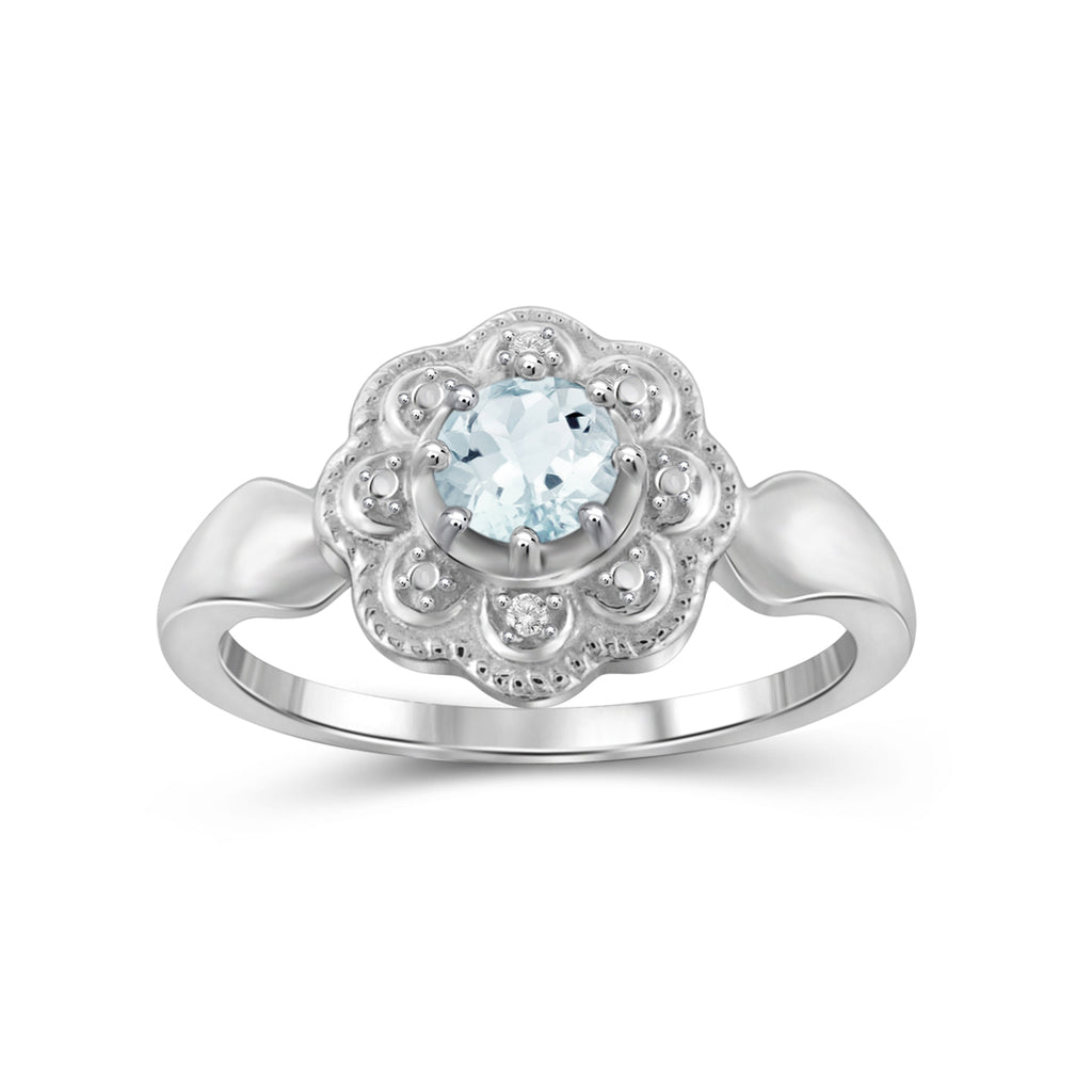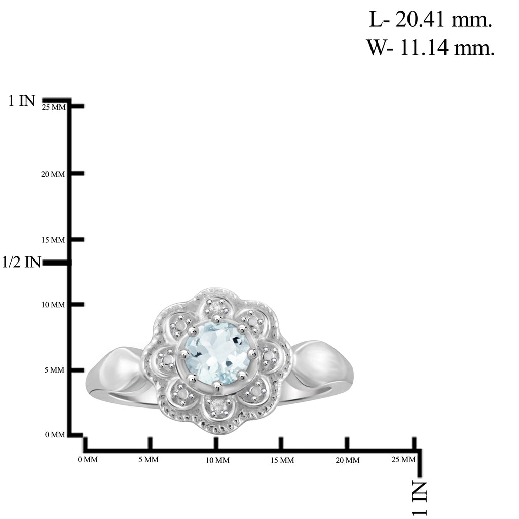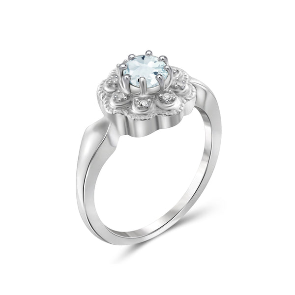 0.45 Carat T.G.W. Aquamarine Gemstone and White Diamond Accent Sterling Silver Ring