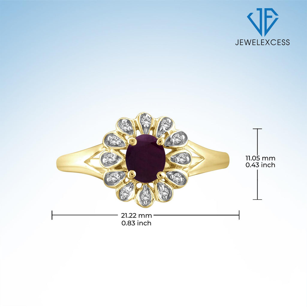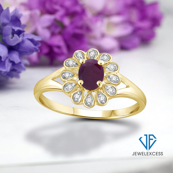 Ruby Ring Birthstone Jewelry – 0.25 Carat Ruby 14K Gold-Plated Ring Jewelry with White Diamond Accent – Gemstone Rings with Hypoallergenic 14K Gold-Plated Band