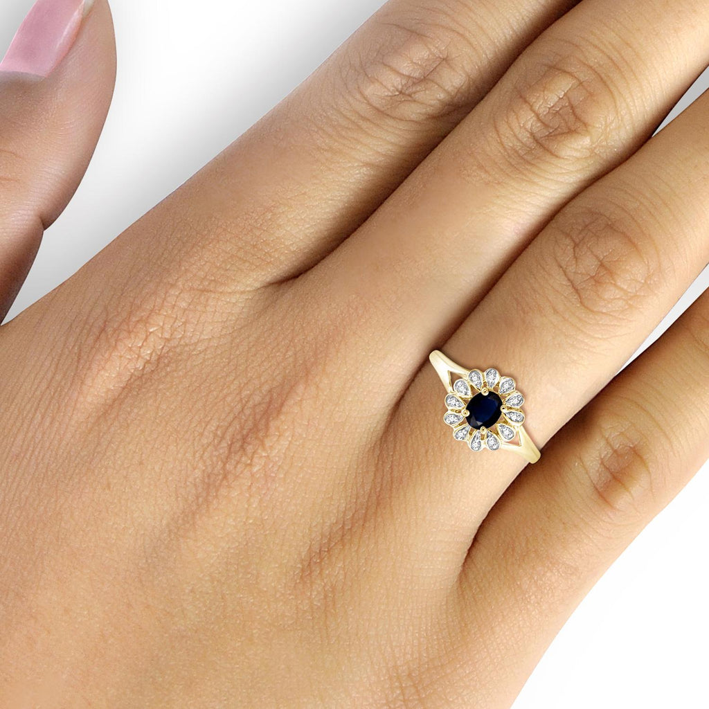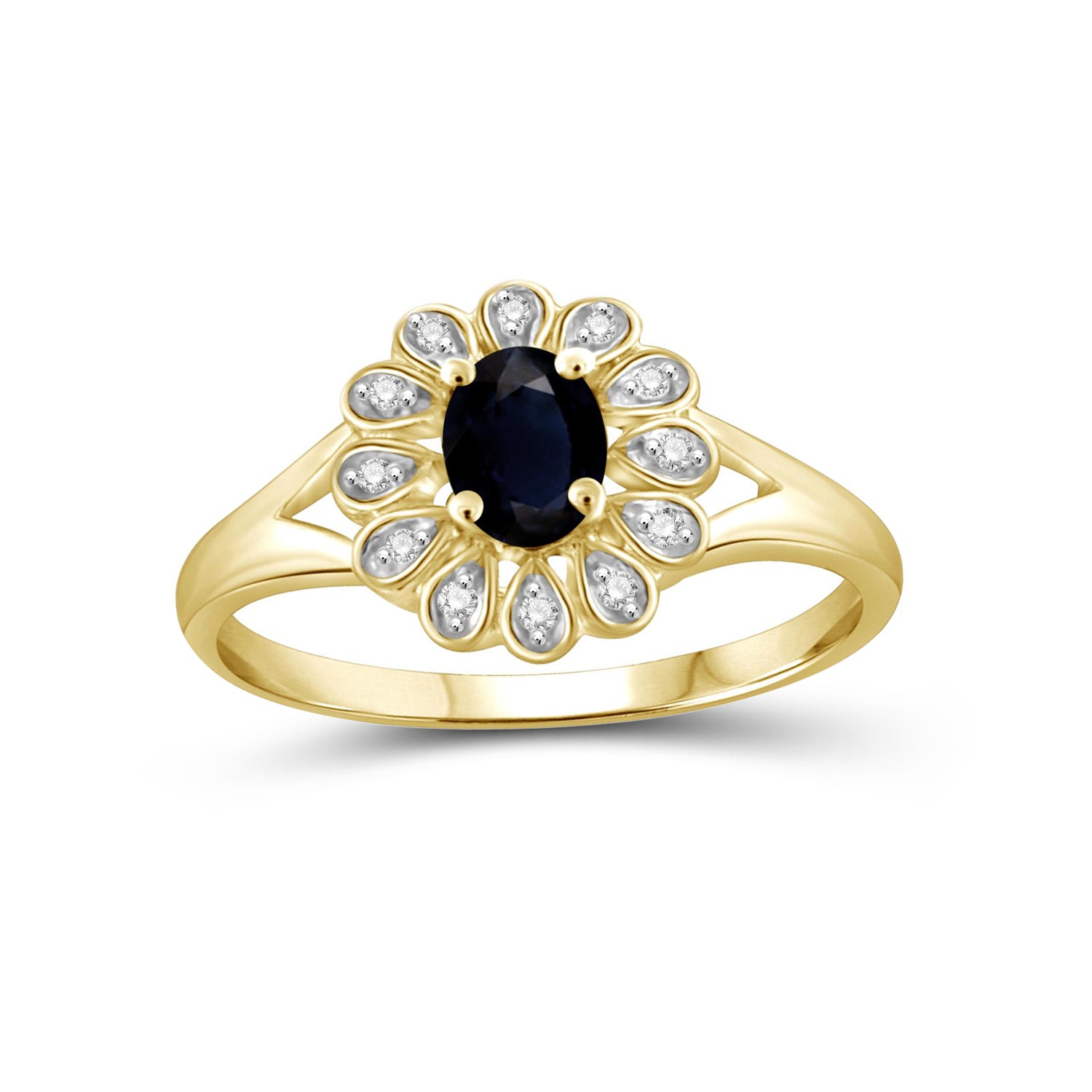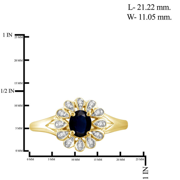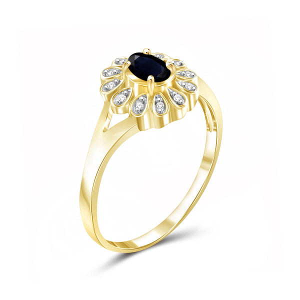 Sapphire Ring Birthstone Jewelry – 0.33 Carat Sapphire 14K Gold-Plated Ring Jewelry with White Diamond Accent – Gemstone Rings with Hypoallergenic 14K Gold-Plated Band