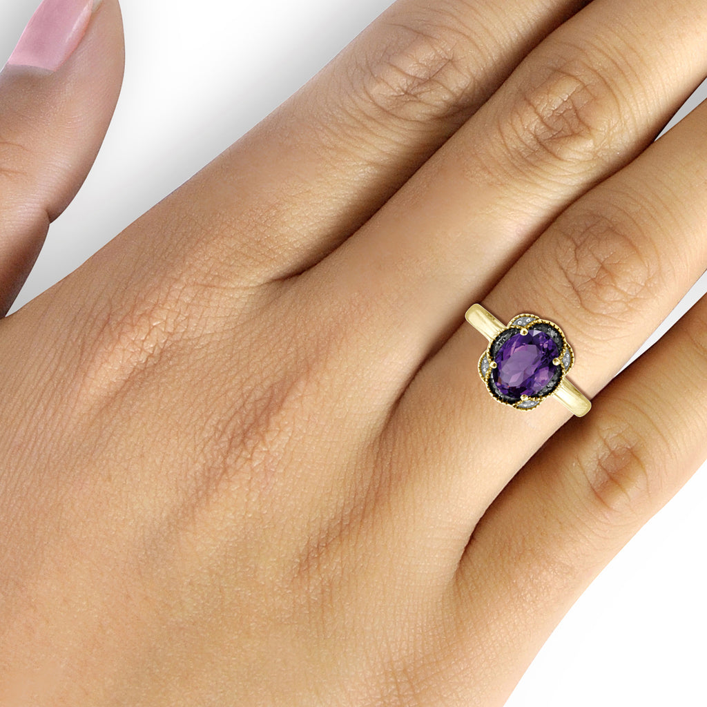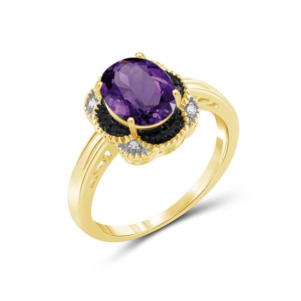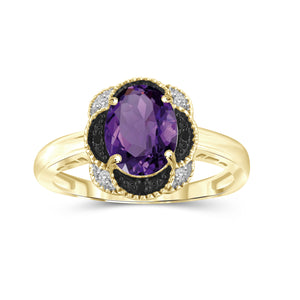 1.65 Carat T.W. Amethyst Gemstone and Accent Black and White Diamond 14K Gold-plated Ring