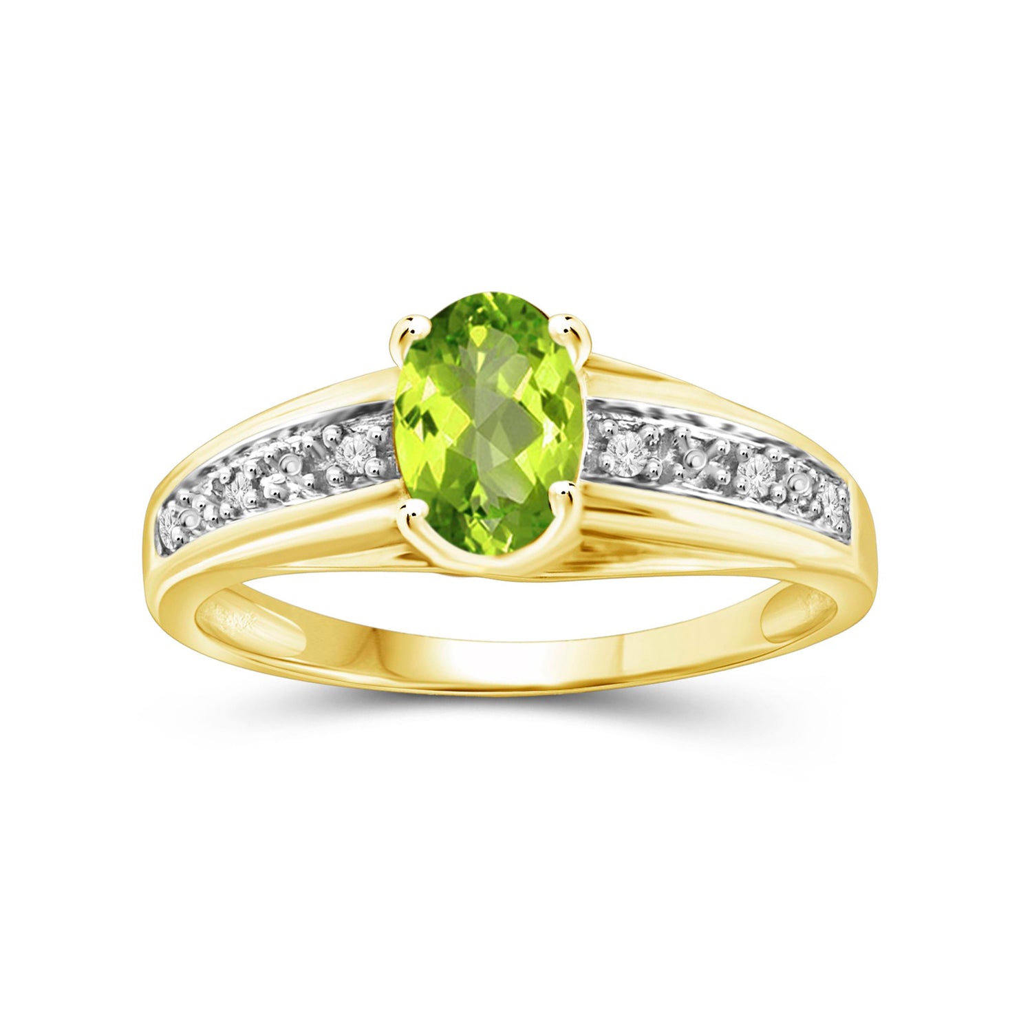 Peridot Ring Birthstone Jewelry – 0.75 Carat Peridot 14K Gold-Plated Ring Jewelry with White Diamond Accent – Gemstone Rings with Hypoallergenic 14K Gold-Plated Band