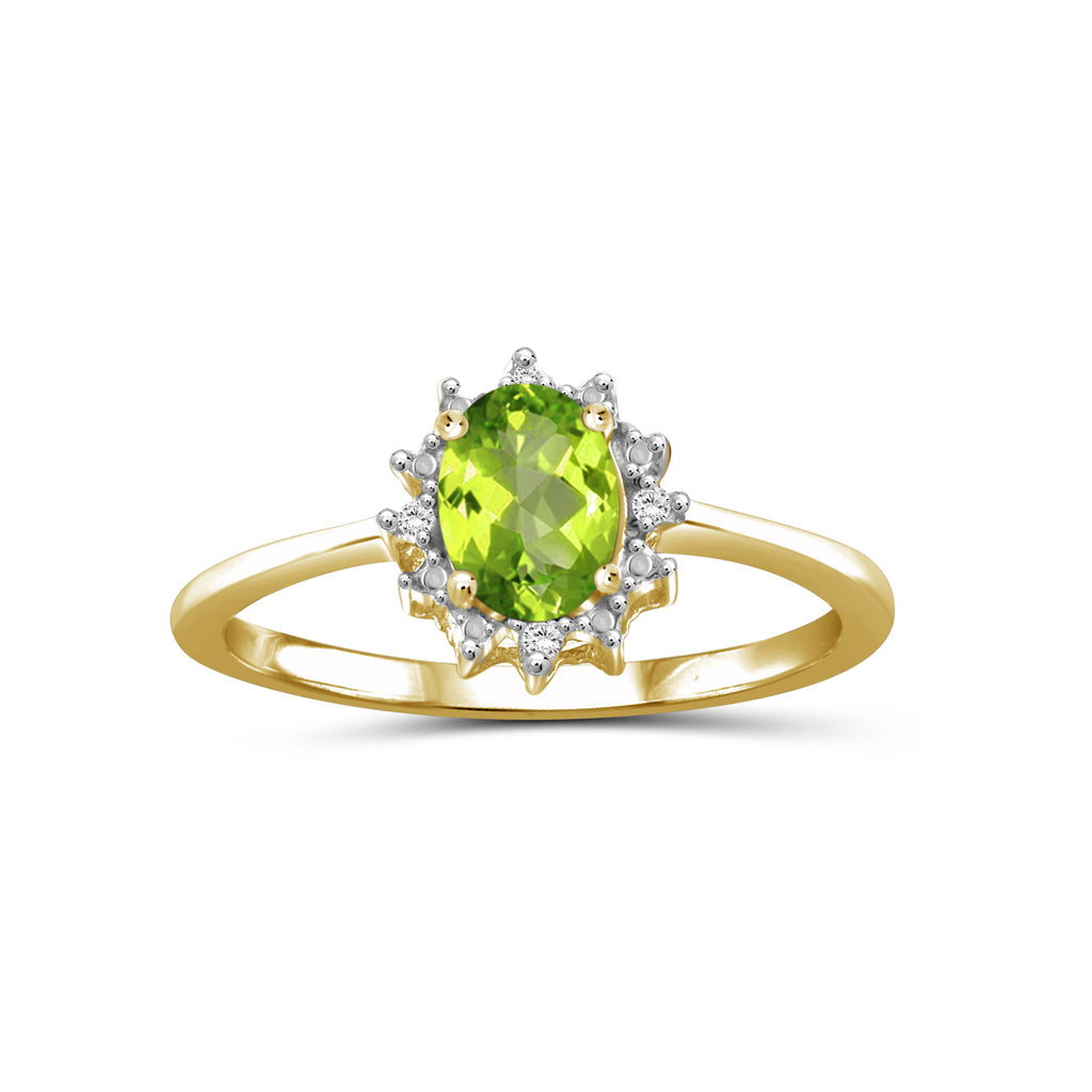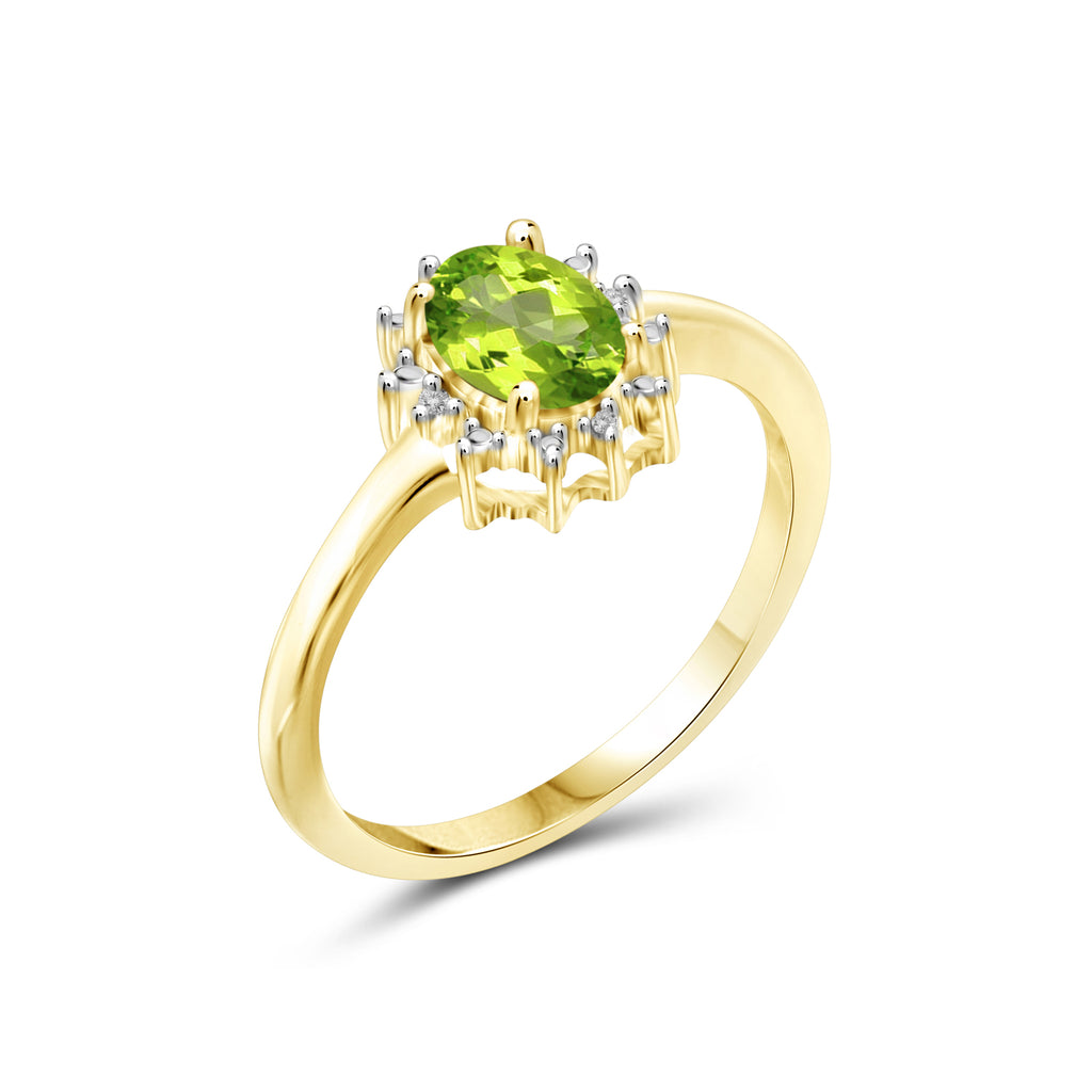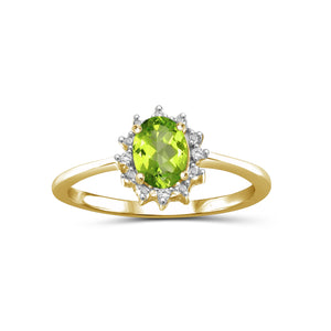 0.82 Carat T.G.W. Peridot Gemstone and Accent White Diamond 14K Gold-Plated Ring