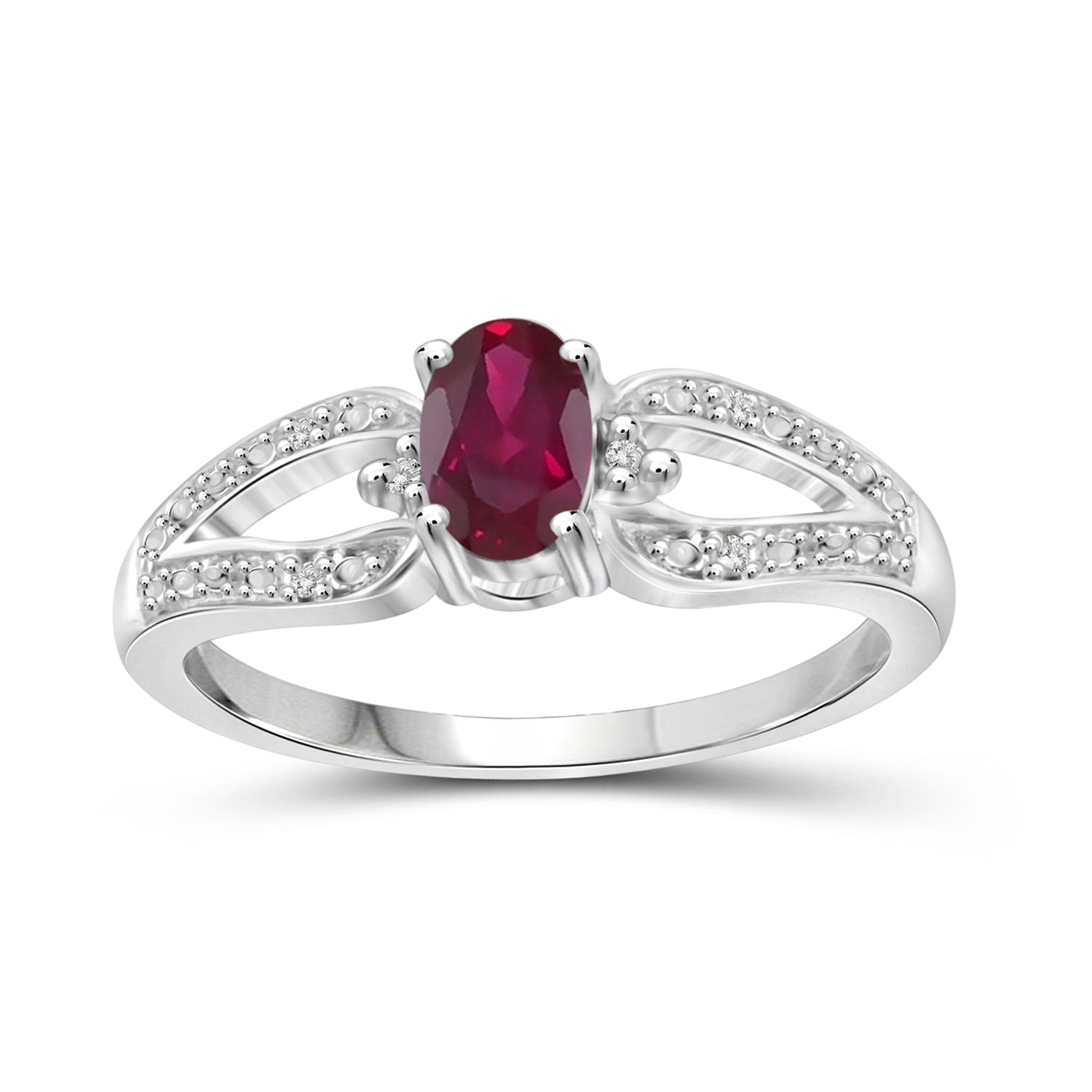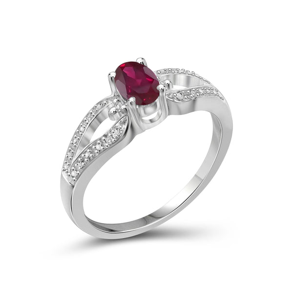 0.48 Carat T.G.W. Ruby Gemstone and Accent White Diamond Sterling Silver Ring