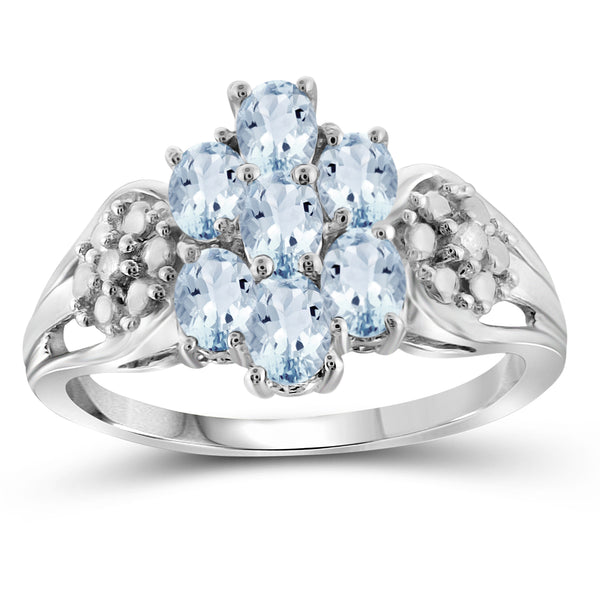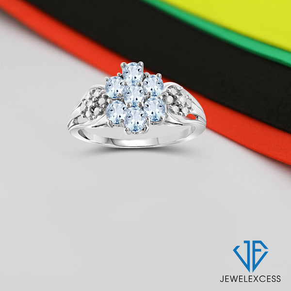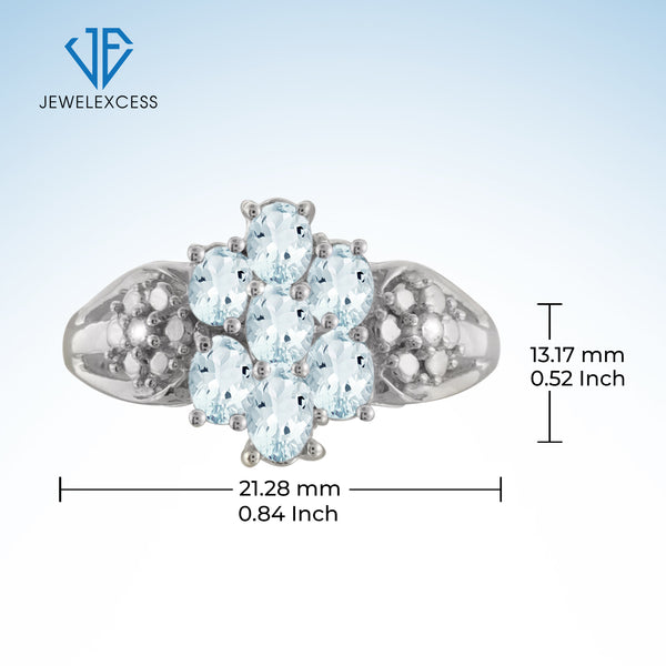 0.98 Carat T.G.W. Aquamarine Gemstone and 1/20 Carat T.W. White Diamond Ring in Sterling silver