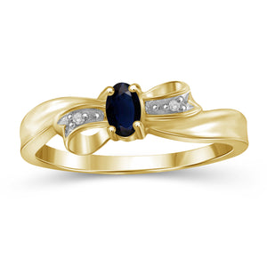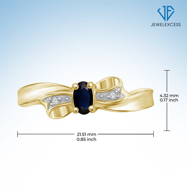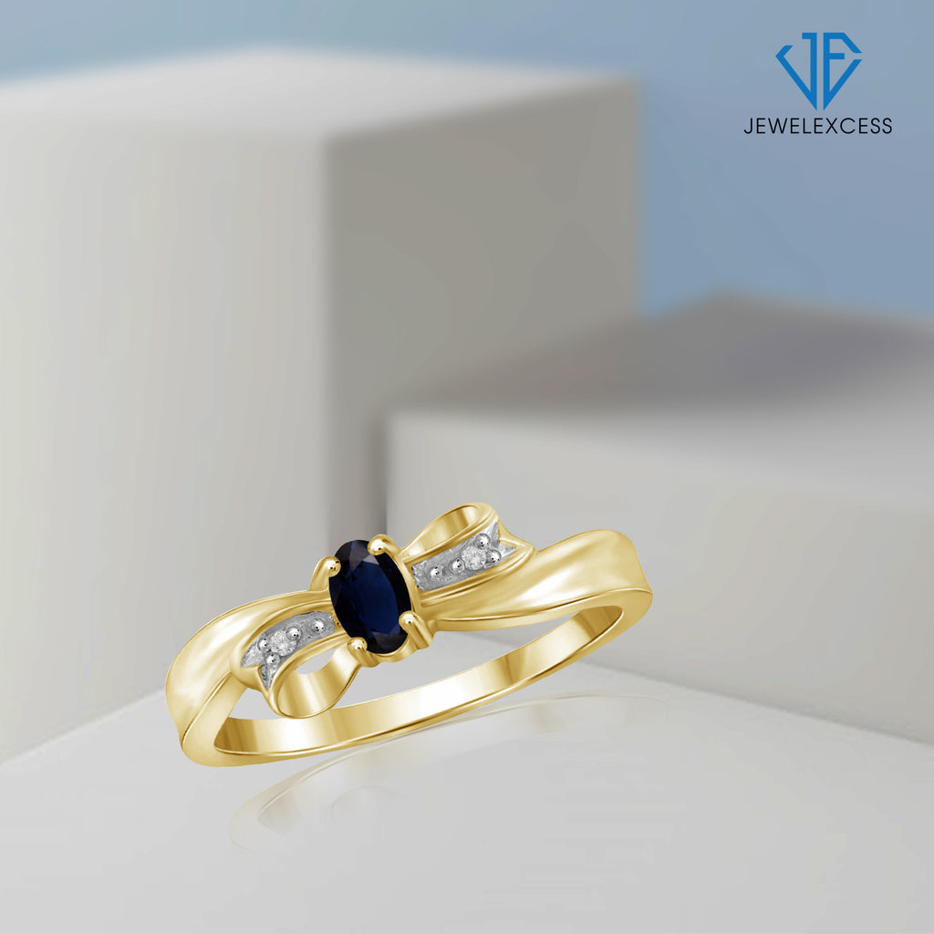 Sapphire Ring Birthstone Jewelry – 0.33 Carat Sapphire 14K Gold-Plated Ring Jewelry with White Diamond Accent – Gemstone Rings with Hypoallergenic 14K Gold-Plated Band