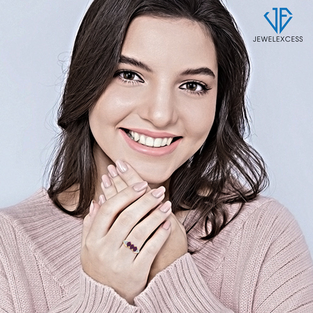A ring might seem like a small accessory, but the right one can really do a lot for your outfit. This stunning gemstone ring will add some serious sparkle and a bright splash of color to your spring wardrobe. This ring features three oval-shaped gemstones, set in sterling silver, with elegant, cut-out detailing on the band. It's a perfect everyday accent piece, but also makes a stunning addition to an evening look.