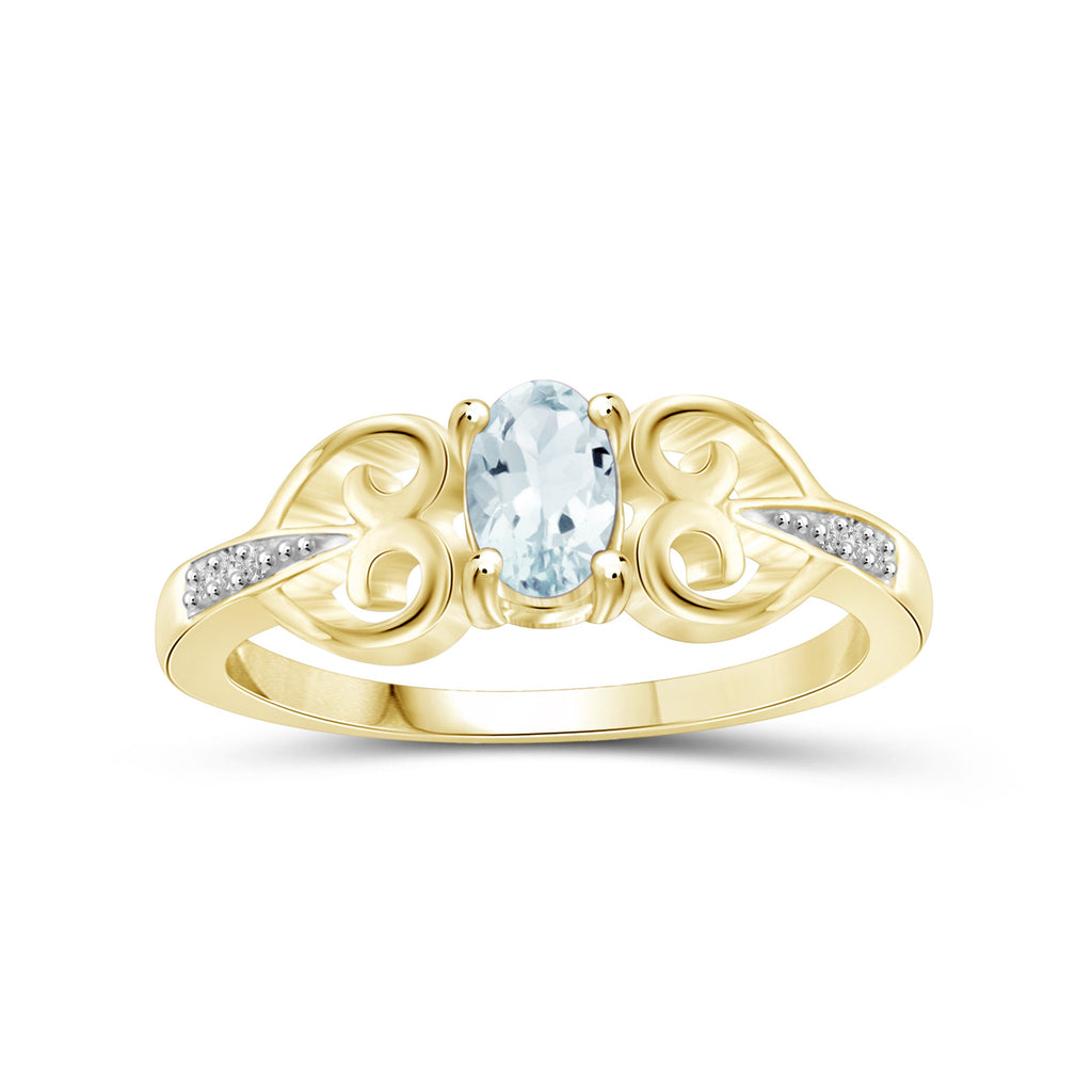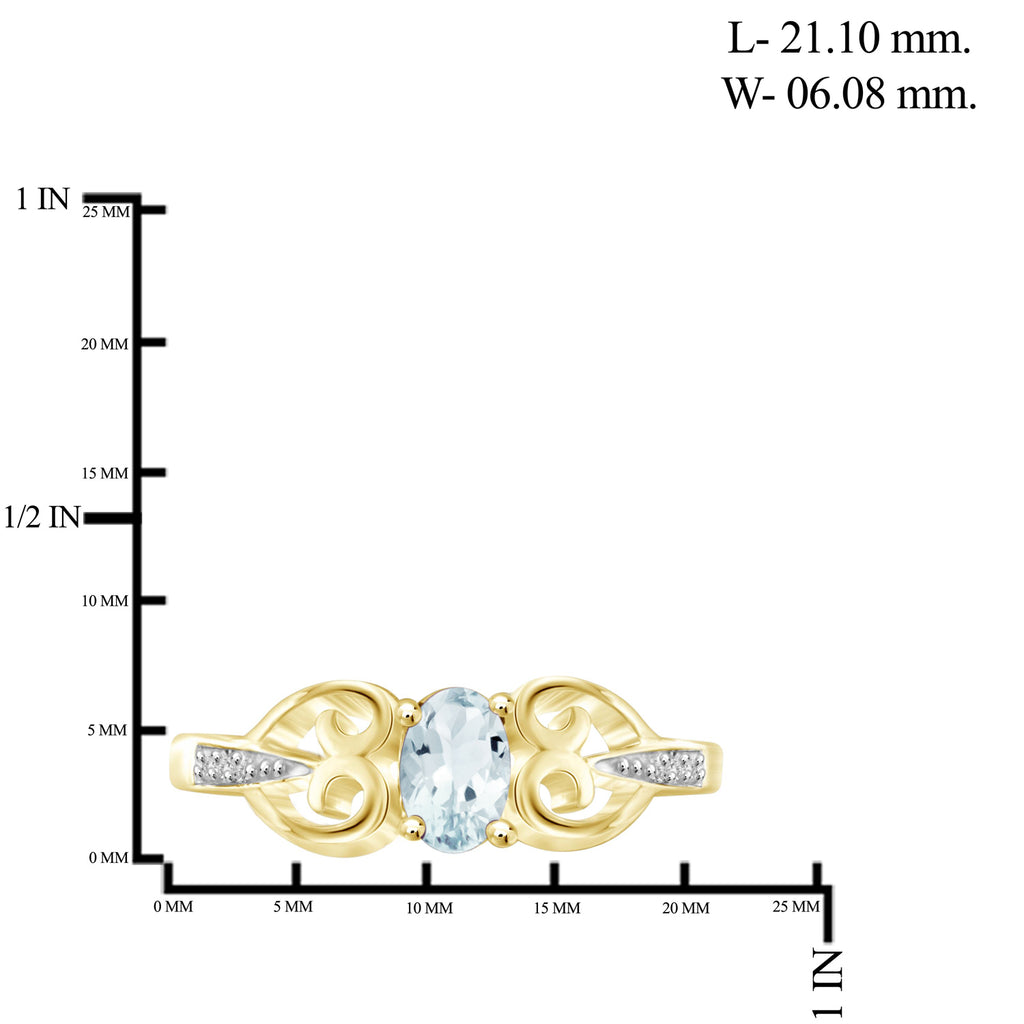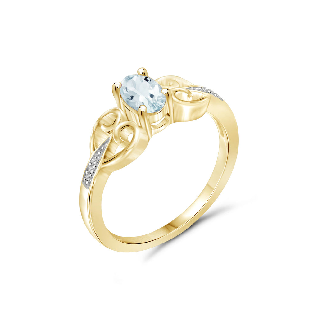 0.44 Carat T.G.W. Aquamarine Gemstone and Accent White Diamond 14K Gold-Plated Ring
