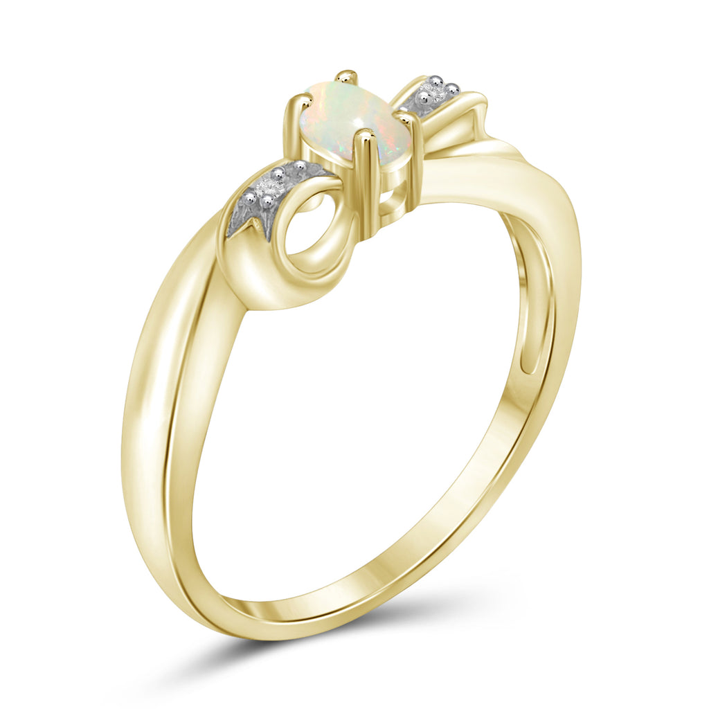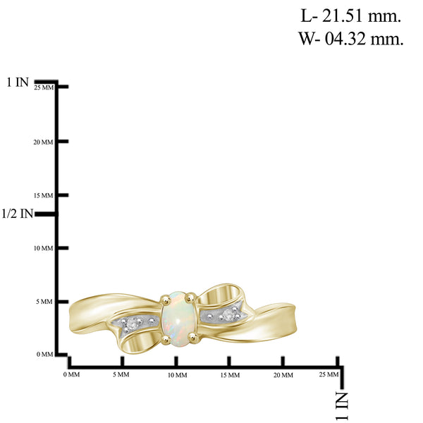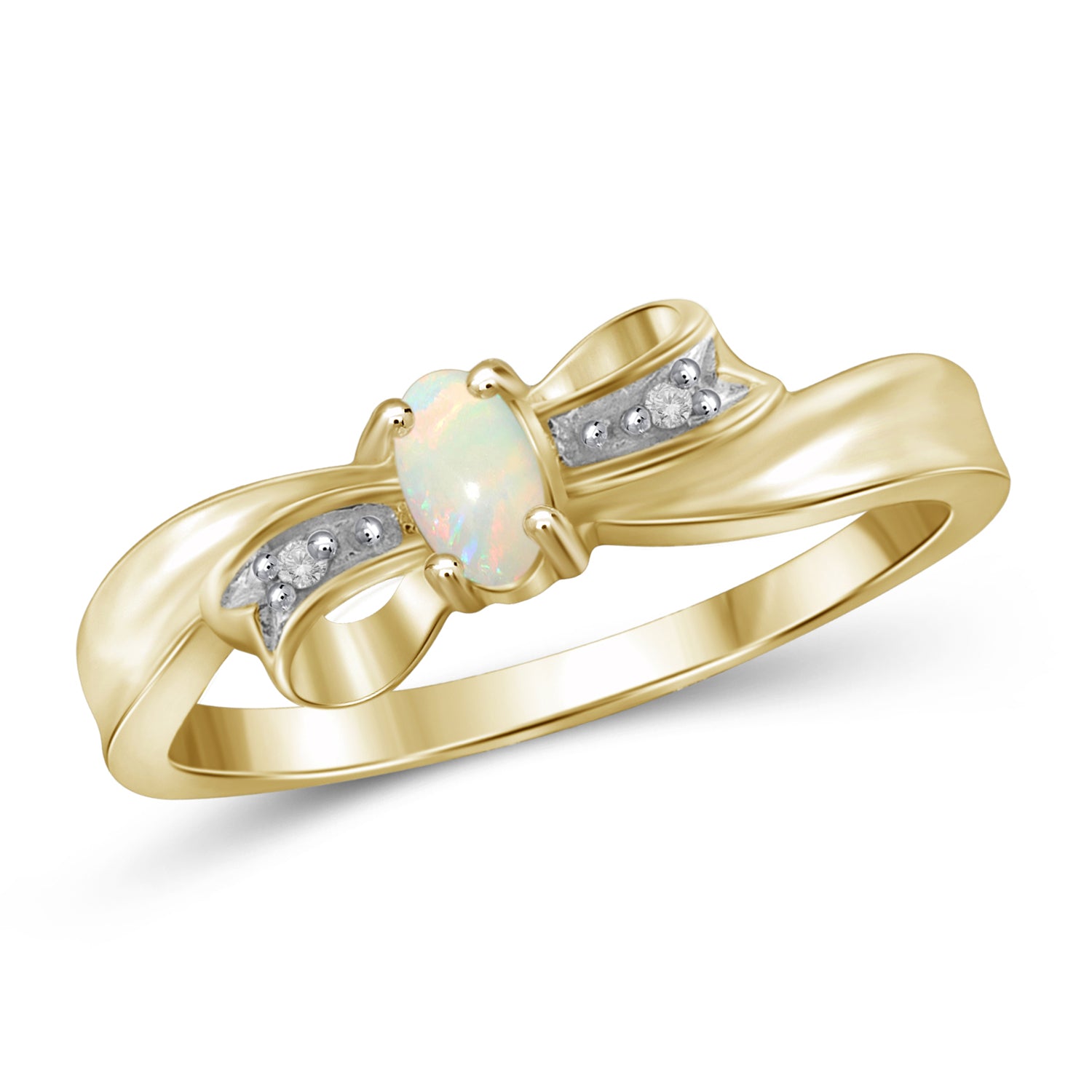 0.10 Carat T.G.W. Opal Gemstone and White Diamond Accent 14K Gold-Plated Ring