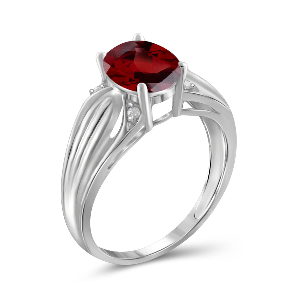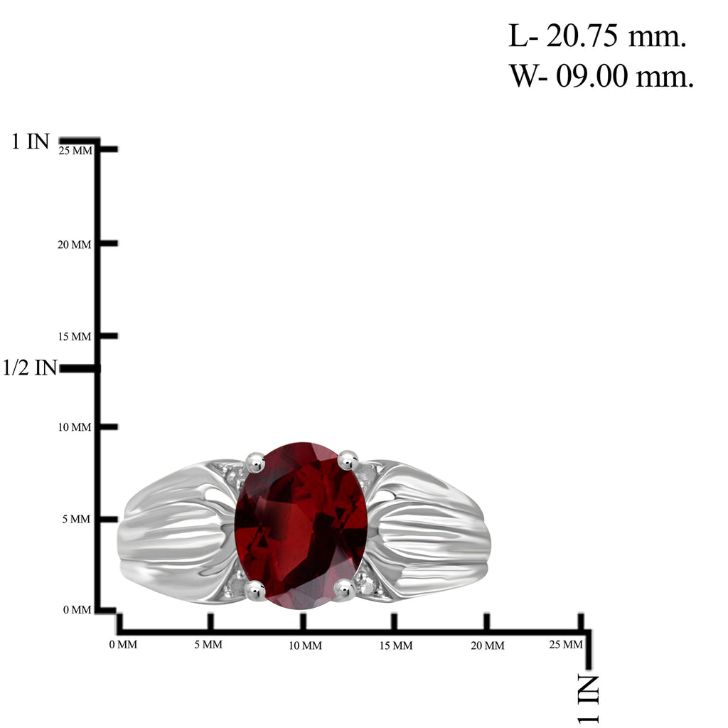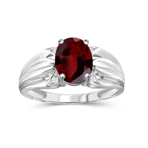 2.20 Carat T.W. Garnet Gemstone and 1/20 Carat T.W. White Diamond Sterling Silver Ring