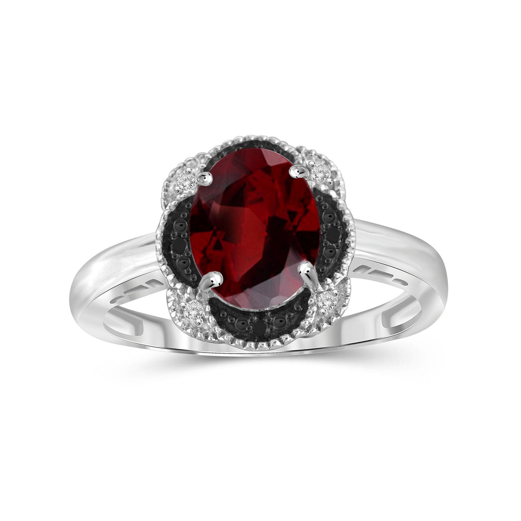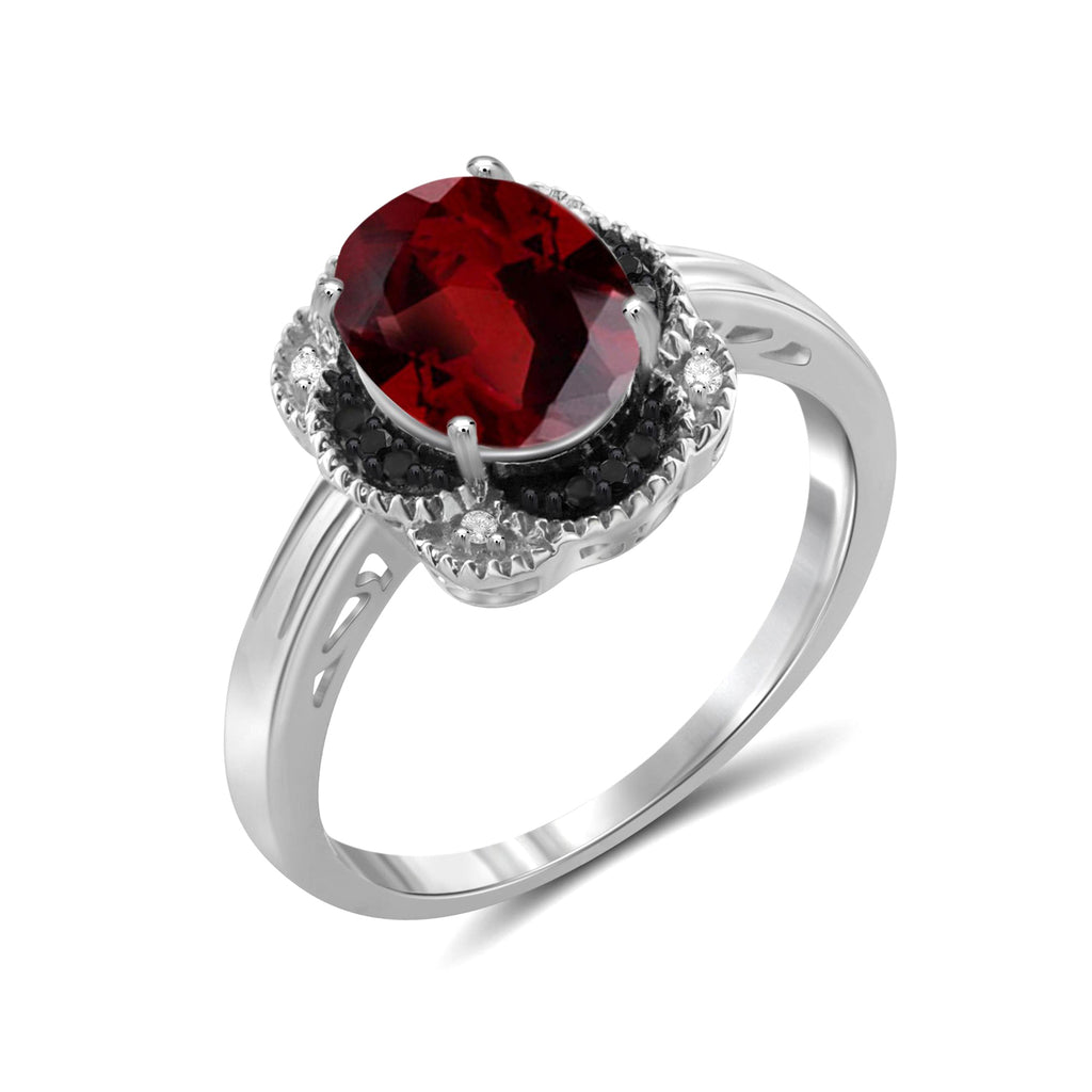Garnet Ring Birthstone Jewelry – 2.20 Carat Garnet Sterling Silver Ring Jewelry with Black & White Diamond Accent – Gemstone Rings with Hypoallergenic Sterling Silver Band