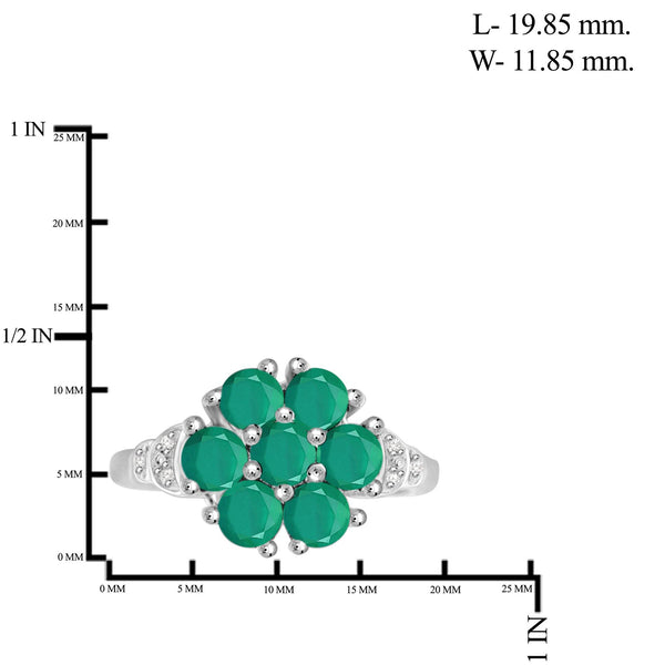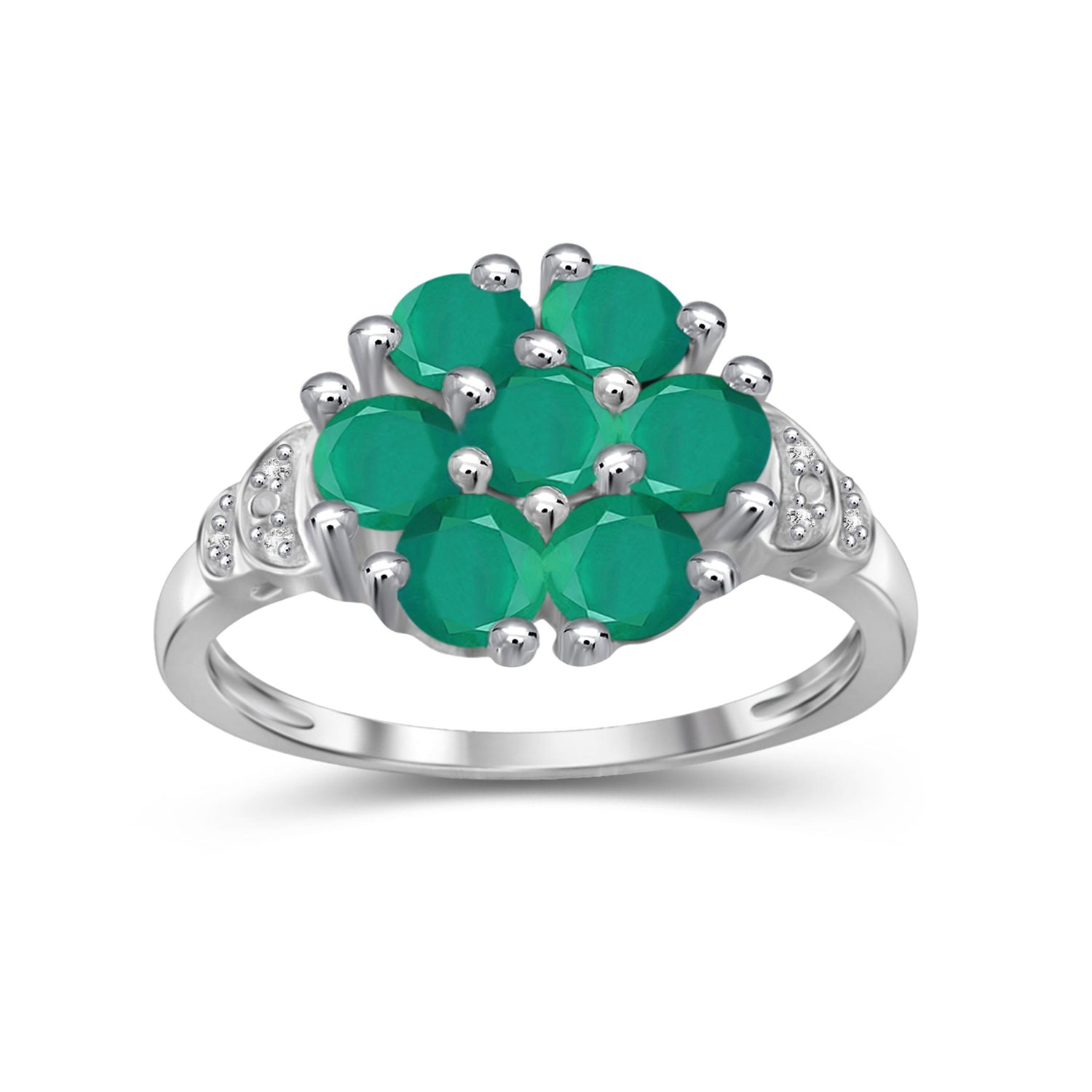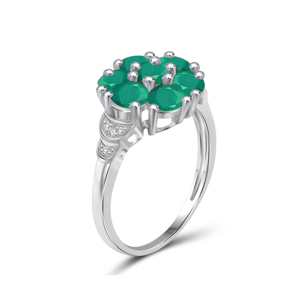 1.96 Carat T.G.W. Emerald Gemstone And White Diamond Accent Sterling Silver Ring