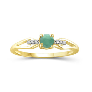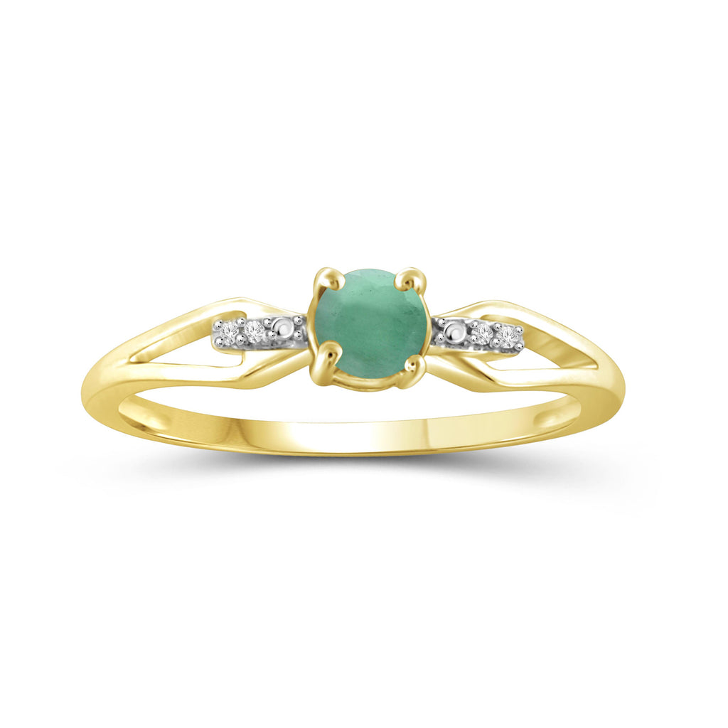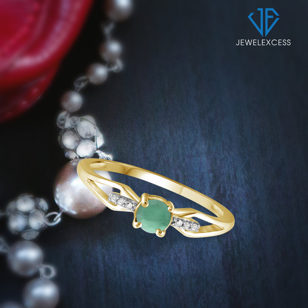 Emerald Ring Birthstone Jewelry – 0.50 Carat Emerald 14K Gold-Plated Ring Jewelry with White Diamond Accent – Gemstone Rings with Hypoallergenic 14K Gold-Plated Band