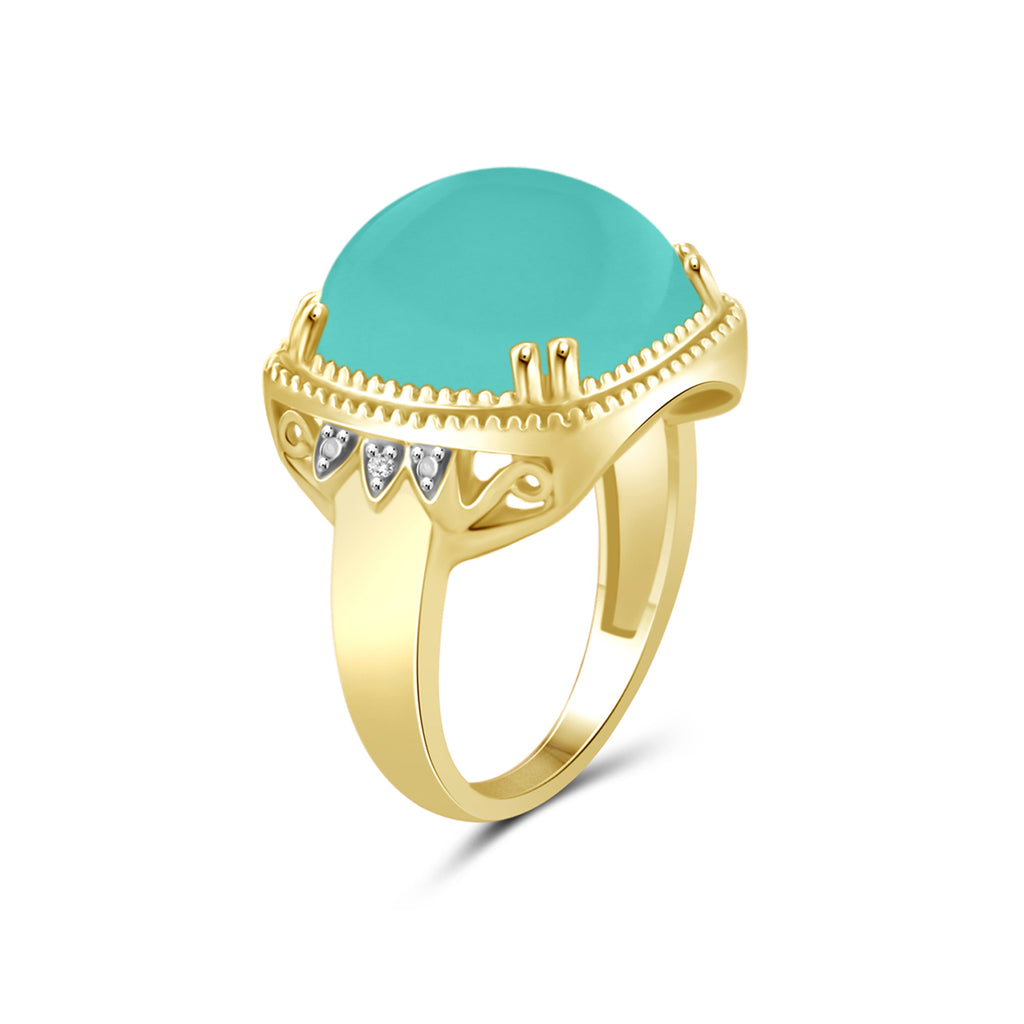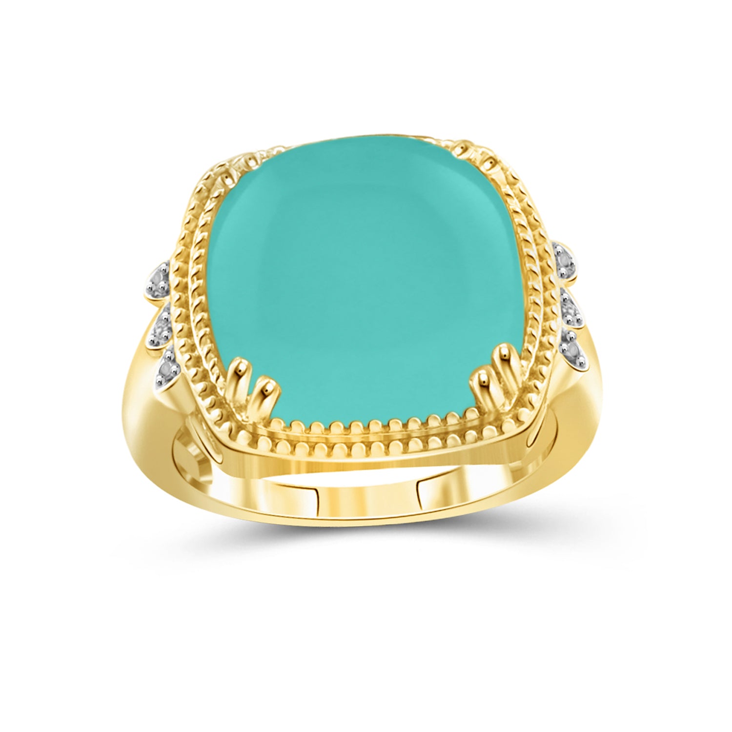 Chalcedony Ring Birthstone Jewelry – 10.75 Carat Chalcedony 14K Gold-Plated Ring Jewelry with White Diamond Accent – Gemstone Rings with Hypoallergenic 14K Gold-Plated Band