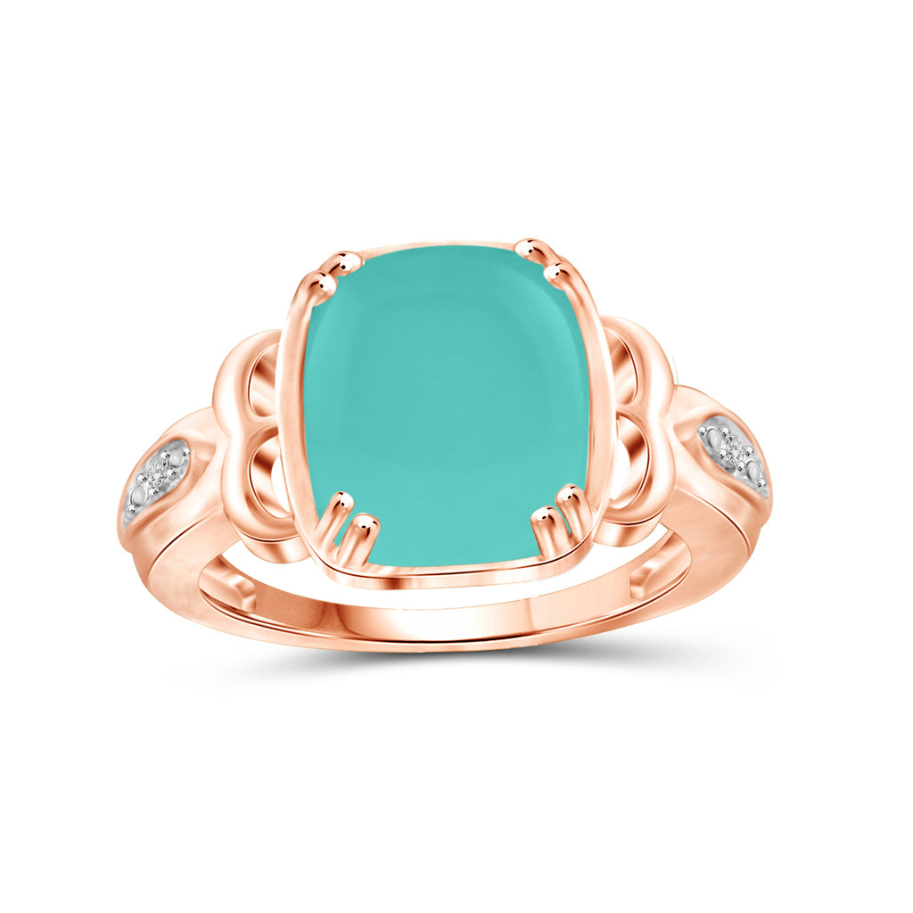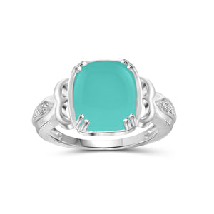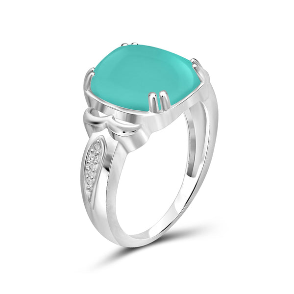 Chalcedony Ring Birthstone Jewelry – 5.00 Carat Chalcedony 0.925 Sterling Silver Ring Jewelry with White Diamond Accent – Gemstone Rings with Hypoallergenic 0.925 Sterling Silver Or Rose Gold Over Silver Band