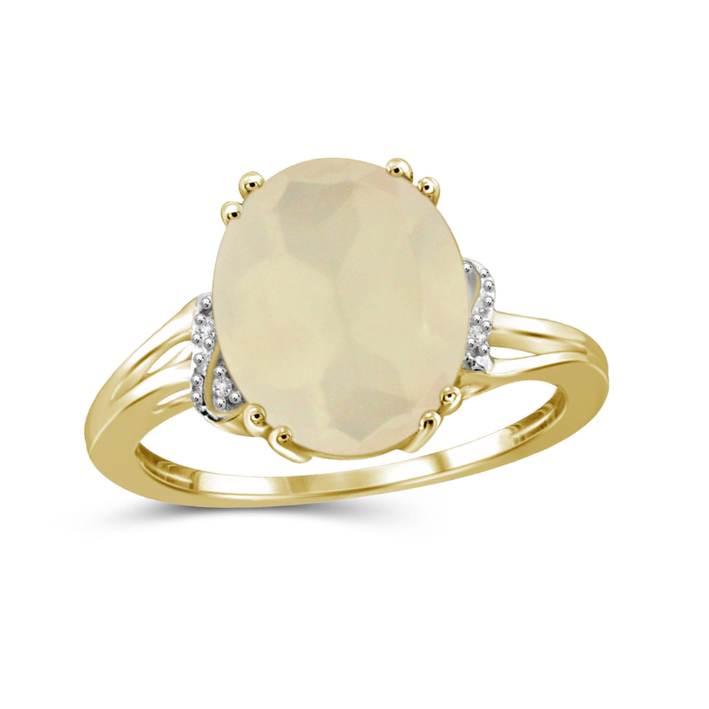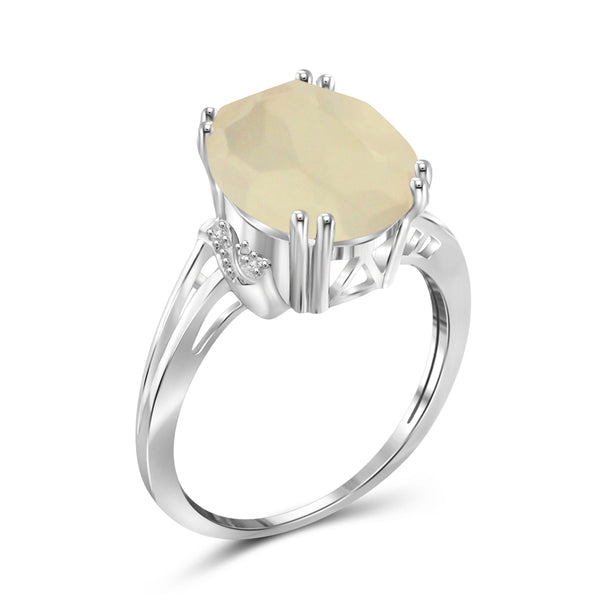 Moonstone Ring Birthstone Jewelry – 4.25 Carat Moonstone 0.925 Sterling Silver Or 14K Gold-Plated Ring Jewelry with White Diamond Accent – Gemstone Rings with Hypoallergenic 14K Gold-Plated Band