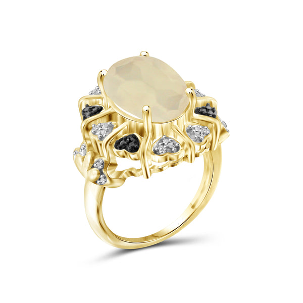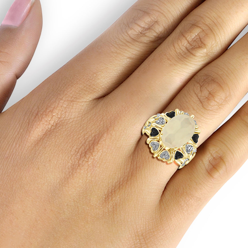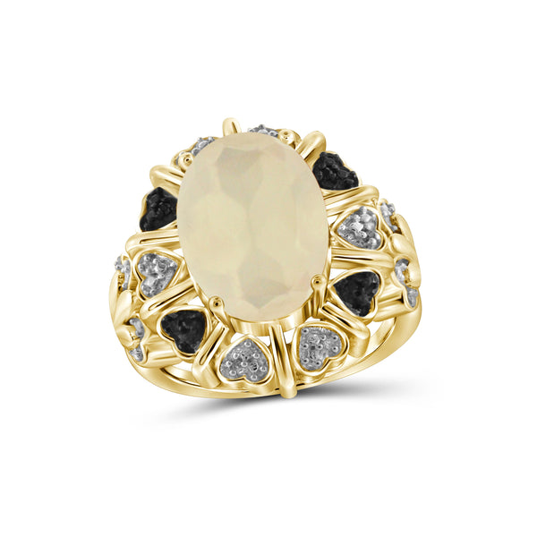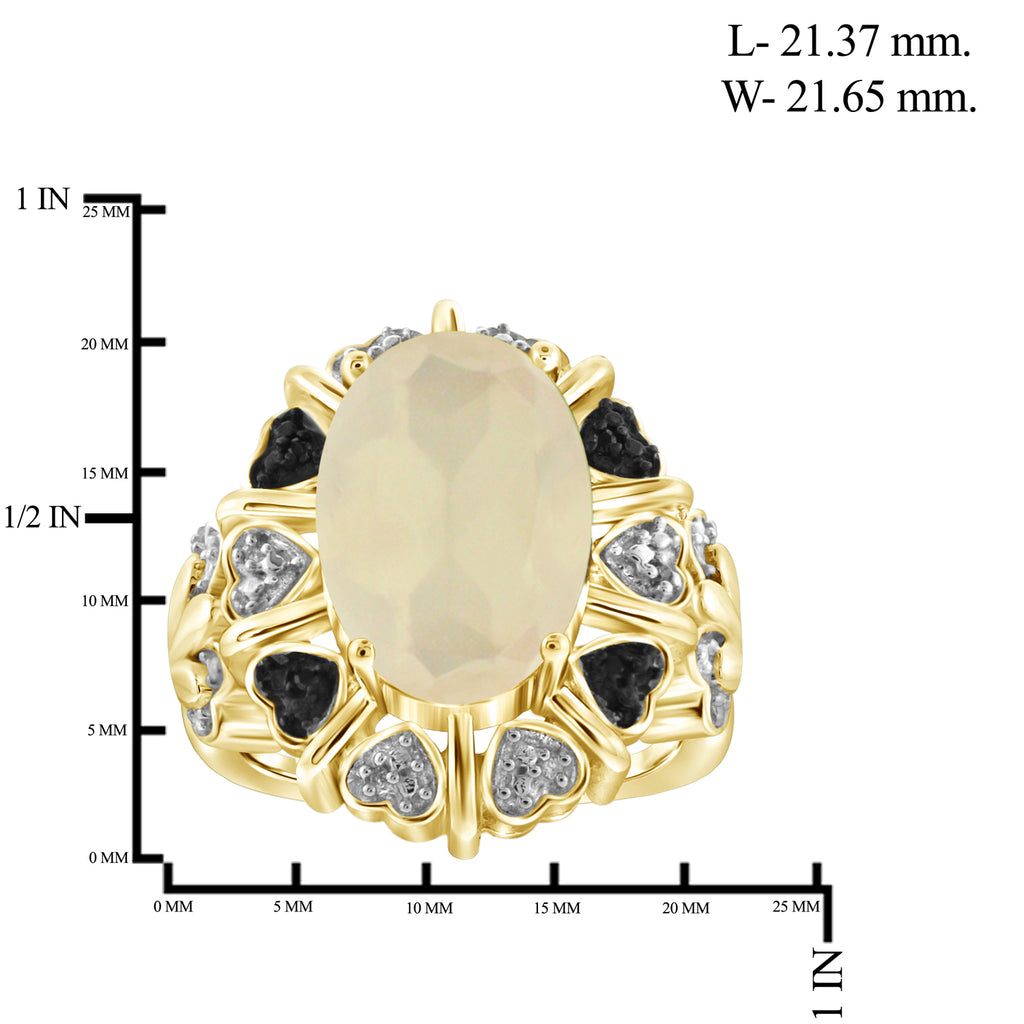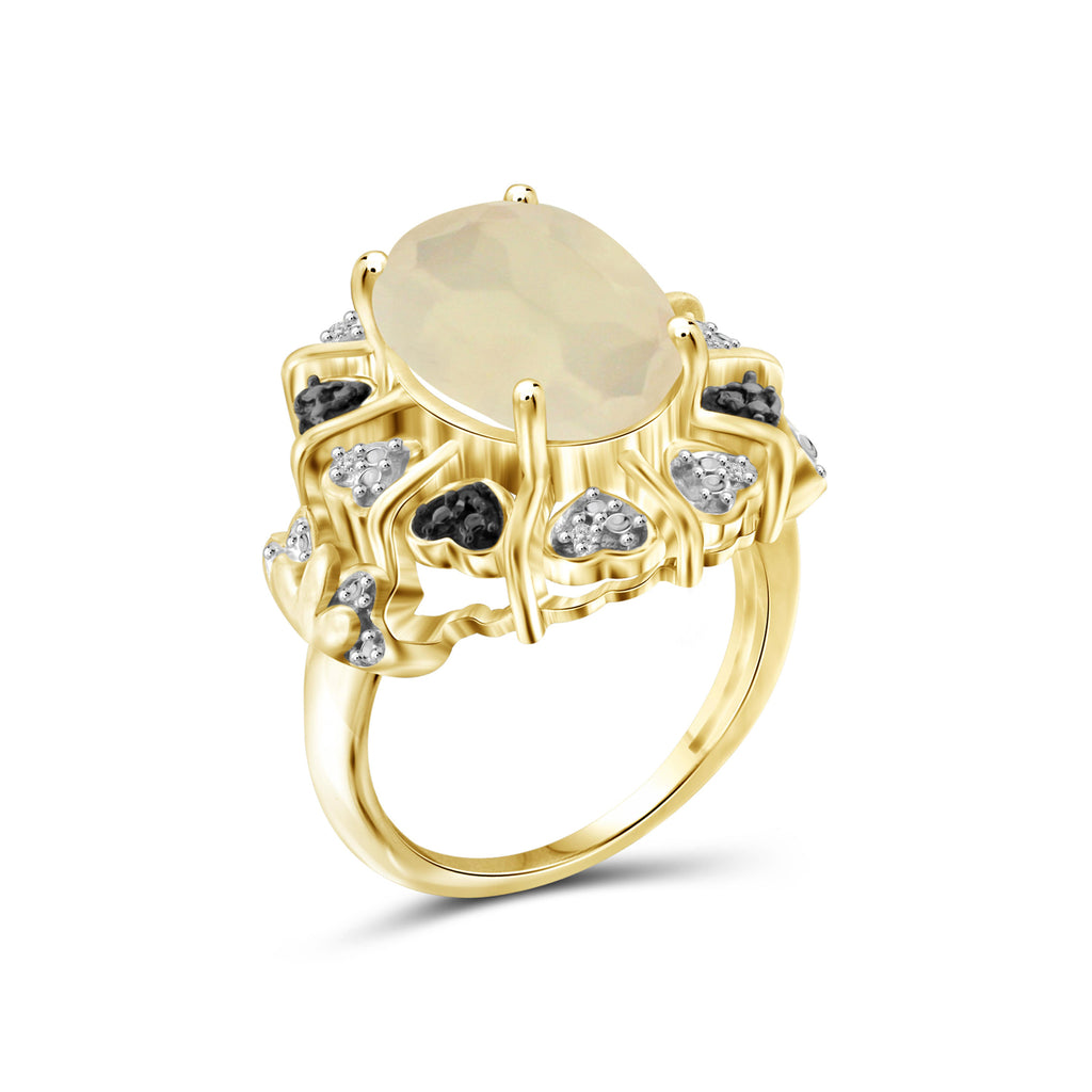 Moonstone Ring Birthstone Jewelry – 5.50 Carat Moonstone 14K Gold-Plated Ring Jewelry with Black & White Diamond Accent – Gemstone Rings with Hypoallergenic 14K Gold-Plated Band