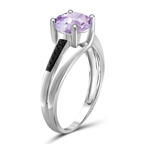 1 1/5 Carat T.G.W. Pink Amethyst And Black Diamond Accent Sterling Silver Ring